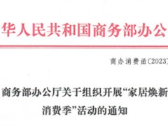 商务部办公厅印发《关于组织开展“家居焕新消费季”活动的通知》,根据“2023消费提振年”总体安排,于2023年9—12月在全国 [详细]