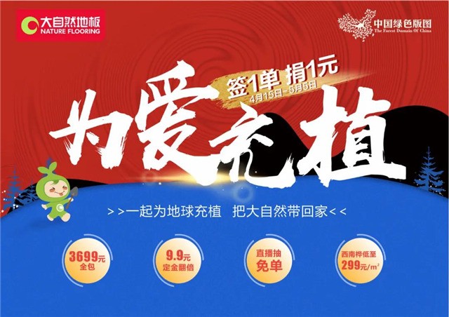 5月5日,大自然地板“为爱充植”活动完满结束。本次活动以线上线下互联,短视频+直播等系列动作共同发力,从聚拢人气到门店引流环环相扣,截至目前,活动传播触达量超1.4亿。