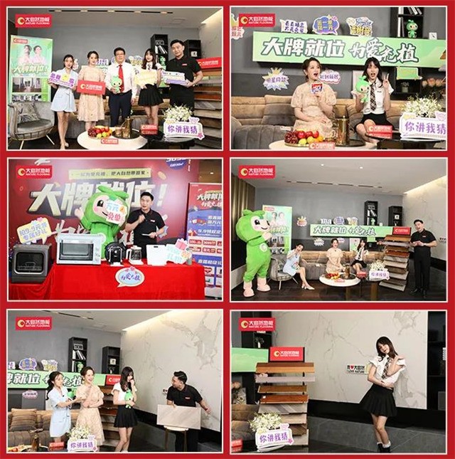 4月29日,以“大牌就位为爱充值”为主题的大自然地板直播开播,直播邀请了知名演员邓莎、时尚博主金克丝做客活动直播现场,同时大自然首席产品官——佘建彬先生作为总裁嘉宾,丰富的直播环节、海量的福利派送,引爆全网,观看人次突破2130万。
