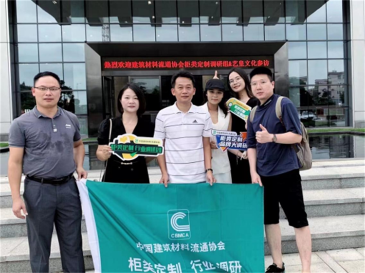 6月21日,中国建筑材料流通协会柜类定制调研组与艺皇文化走进索菲亚家居,深入了解定制家居龙头企业的发展运营现状。索菲亚集团行政中心副总经理陈诚盛、行政中心行政总监梁瑞昌、行政中心副经理钟石林对调研组组长周时珍、副组长陈艳霞及艺皇文化总经理戴文欣、艺皇营销部总经理成必春等人的到来进行热情接待并开展座谈交流以及带领参观司米工厂和索菲亚家居全新整家定制展厅。