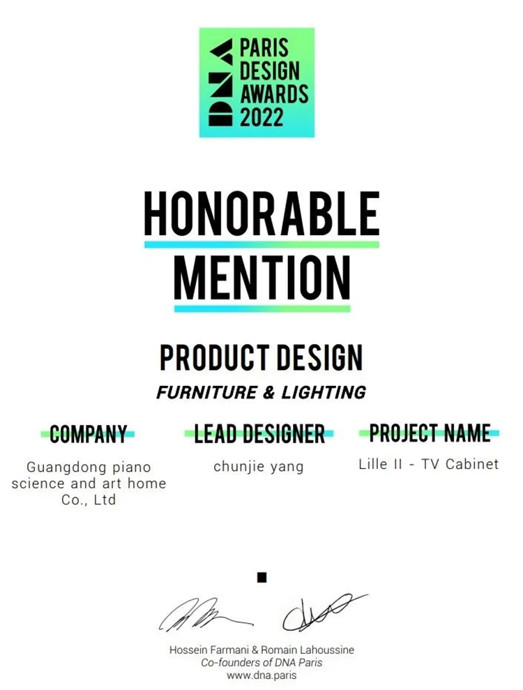 近日,2022法国巴黎DNA设计大奖正式公布获奖名单,经过国际权威专业的评审,皮阿诺在众多国际优秀作品中再次脱颖而出,喜获3项殊荣!分别是:「阿丽亚」系列衣柜荣获2022法国巴黎DNA设计大奖,「里尔Ⅱ」系列电视柜和「墨染」系列书柜荣获2022法国巴黎DNA设计大奖优秀奖,这是法国巴黎DNA设计大奖对皮阿诺实用、美观和创新的产品设计的认可和肯定。