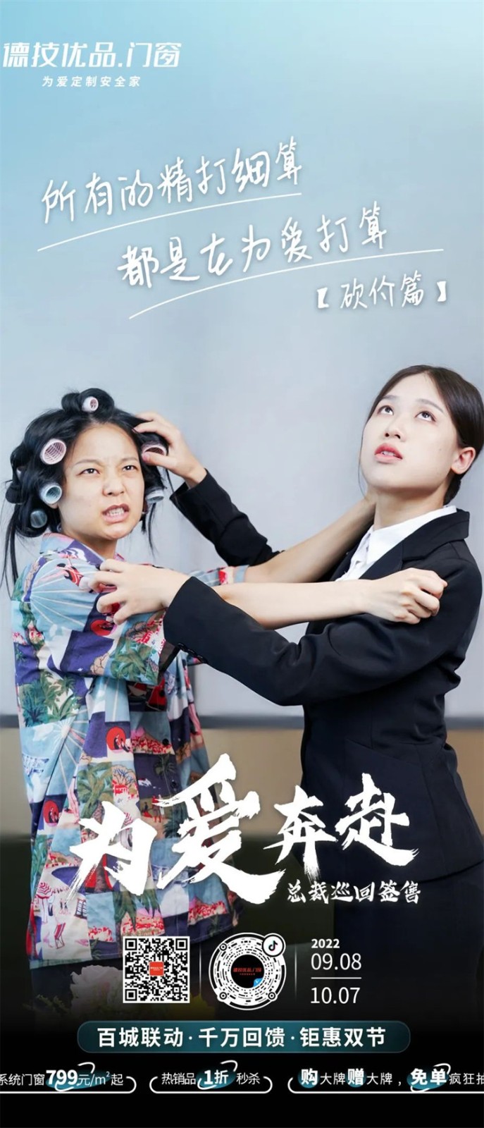 在线上,德技优品门窗重磅推出三大创意视频短片,从浪漫童话、趣味生活、人生哲学中汲取灵感,结合“为爱定制安全家”核心主张以及“为爱奔赴”活动主旨,在清晰传递品牌信息的同时,还为受众带来美好的观看体验。