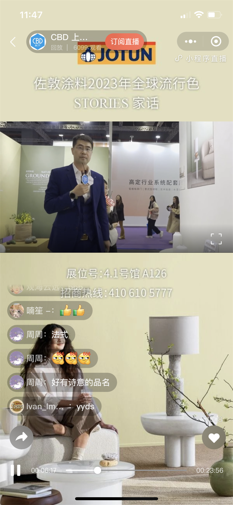 本届展会线上线下双线并行,通过线下展示与线上直播的深度结合,双渠道商务洽谈,促进买卖双方达成商贸交易。线下展会如火如荼进行之时,同步推进线上直播全面发力,保持高频曝光,高效助力商贸沟通与品牌宣传。本次展会,官方小程序、视频号直播累计241965人次观看。