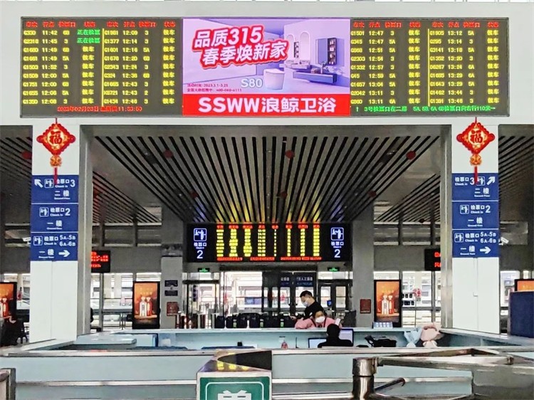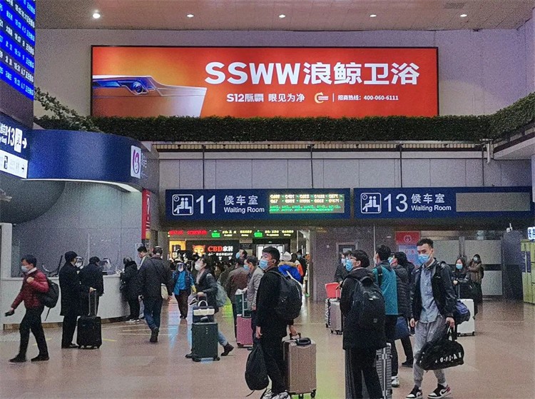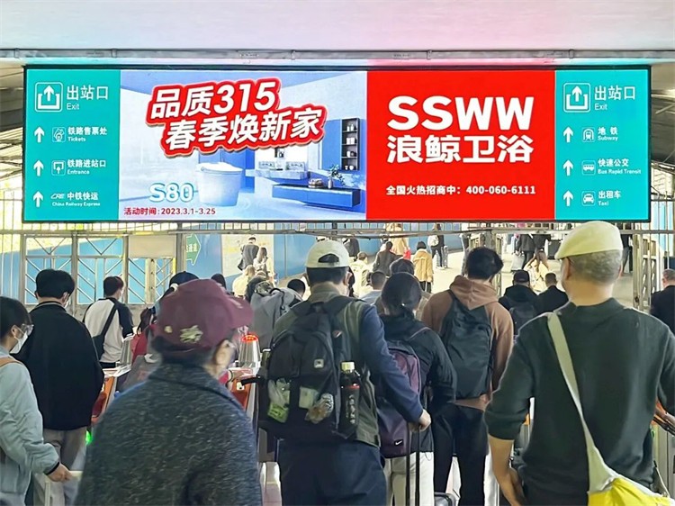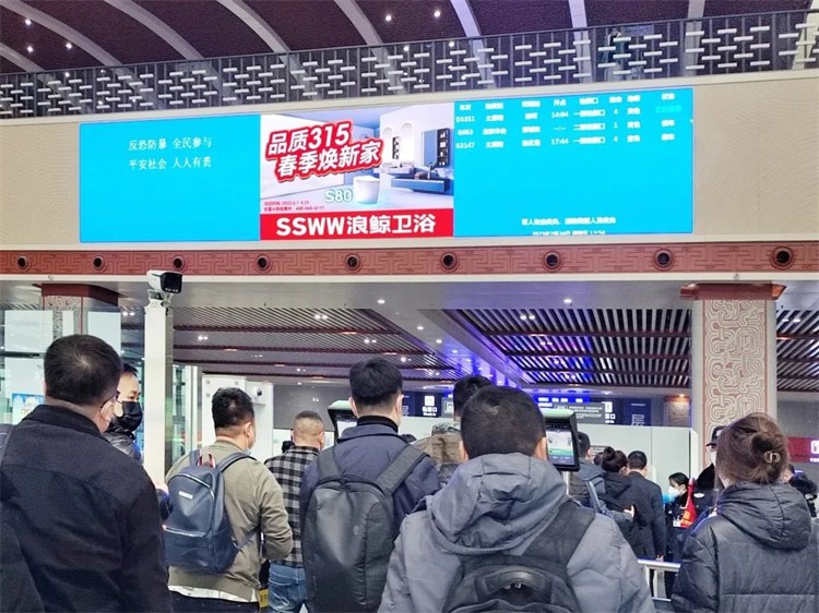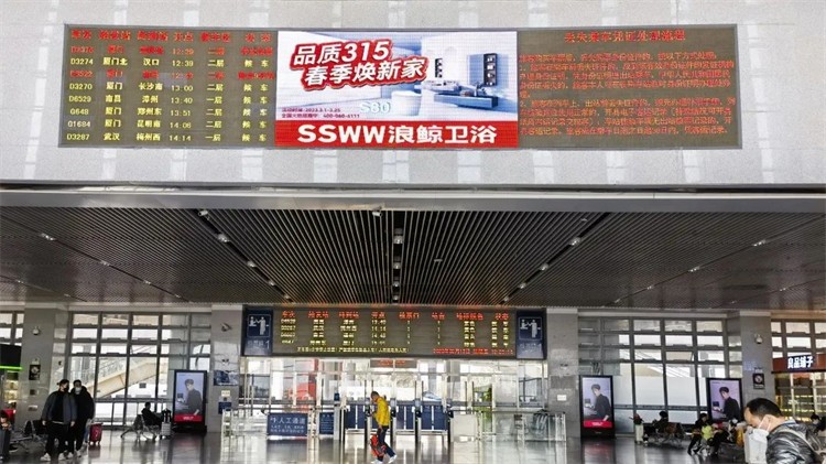 全面覆盖,强势霸屏!2023年开春至今高铁流量日趋高涨,5.1节假日期间全国各大核心高铁站客流量和曝光量甚至达到至高点。浪鲸卫浴抓住时机在5月中国品牌日之际,在全国各地高铁站密集投放,辐射范围从南到北触达北京西、济南西、南京南、上海虹桥、长沙南、深圳北、广州南、佛山西站等50个重点城市,从咨询台、候车大厅再到进出站口随处可见的浪鲸卫浴大屏形象,不仅实现了全方位的品牌覆盖,更在客流密集的全场景空间多次触达用户,为品牌营销渗透提供强大的支撑力。