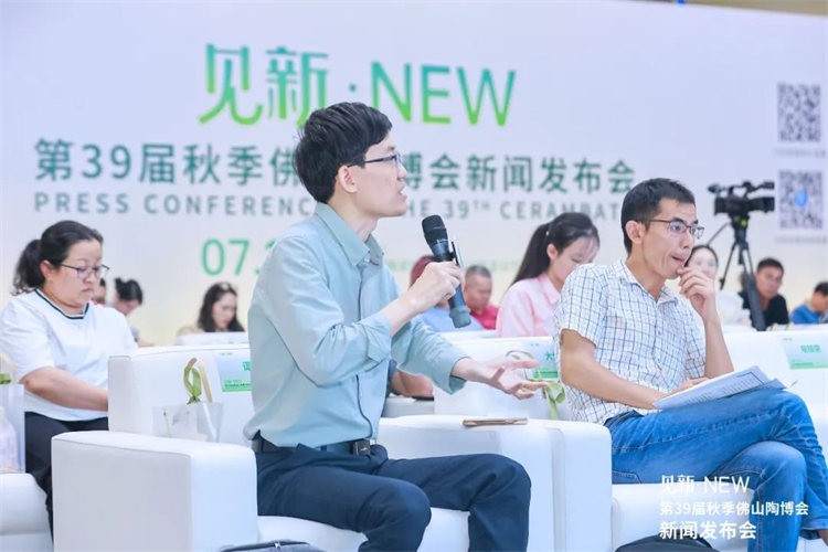 在正式开始媒体答疑环节前,佛山中陶城集团总裁助理、中国(佛山)陶瓷总部总经理、中国(淄博)陶瓷总部总经理汤洁明针对第39届秋季佛山陶博会在展览形象升级、展会内容打造、展馆定位差异化、华夏馆展区规划、陶瓷文化嘉年华五个板块创新的初心进行了分享。