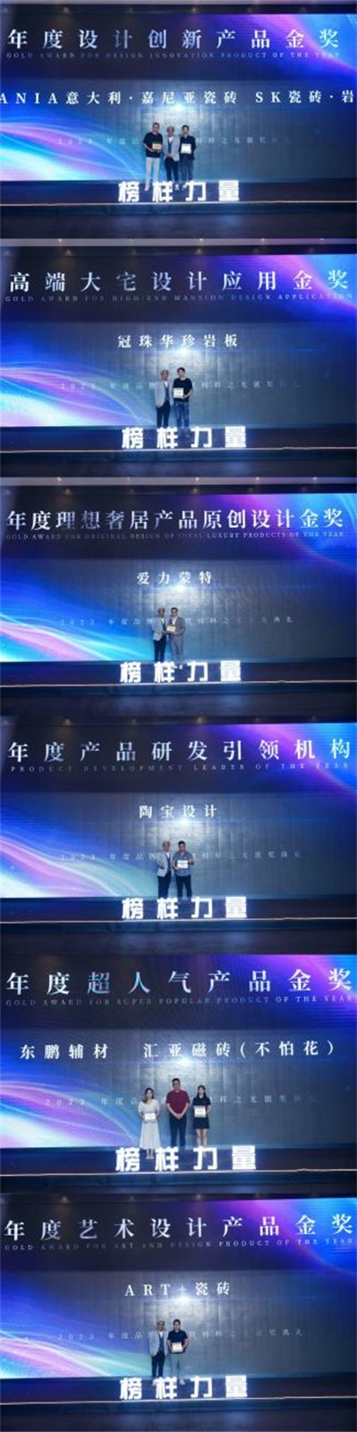 为推动建陶行业持续发展,凝聚向上的力量,融入时代前进的脉搏,以榜样引领行业前行,2023榜样力量组委会根据参选品牌的贡献力、影响力、创新力、生命力、环保力、技术力,服务力,以及行业反响等多个维度进行综合评定,评选出能给消费者带来美好体验、能够影响消费者生活方式的产品、品牌,以及能为建陶行业创造价值的时代领袖人物。
