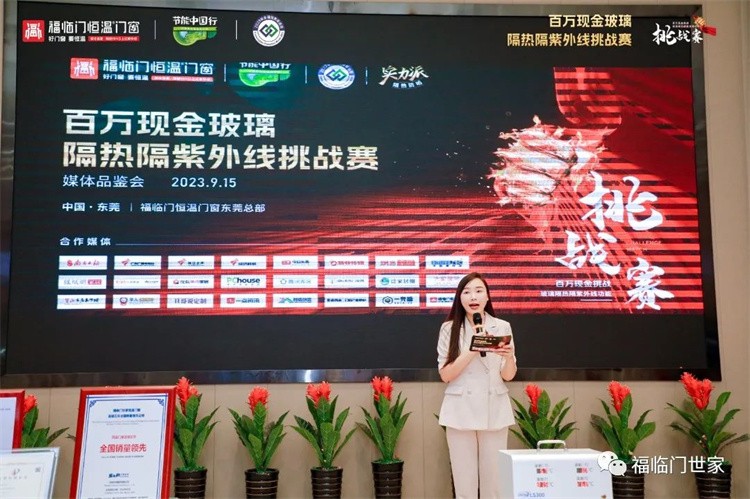 中国建筑材料流通协会智能门窗委员会周时珍致辞表示:“建筑材料流通协会非常看好恒温门窗这个赛道,以及对恒温门窗非常肯定”!中国建筑材料流通协会智能门窗幕墙专委会秘书长周时珍表示福临门恒温门窗不仅能真正打破行业内卷,注重产品创新能力和技术研发,为行业带来更多的惊喜和变革。福临门世家去年参与了《铝合金恒温门窗》和《阳光房》两项标准的制定协同推动整个行业的健康发展。今年积极响应《商务部等13部门关于促进家居消费若干措施的通知》,在协会的引领下,参加商务部组织开展“2023消费提振年”系列活动,以及刚刚启动的“家居焕新消费季”活动。该品牌不仅关注产品的质量和基本性能,还关注门窗玻璃的隔热、防紫外线等功能,此次举办《百万现金玻璃隔热隔紫外线挑战赛》,用有趣的比赛形式,呼吁更多消费者关注门窗产品的功能。为环境保护作出了积极贡献,也为我们消费者提供更好的居住环境。