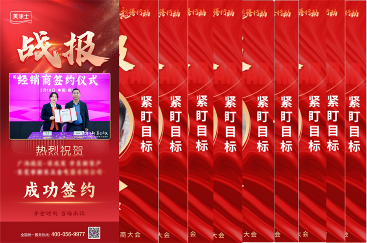 三月以来,美涂士招商团队持续向市场发力,坚持数量和质量并重,政策与服务齐发,以主动出击实现精准招商、高质量招商,凭借大国品牌强大综合实力,美涂士成功吸引众多志同道合的经销商伙伴加盟,招商工作捷报频传。