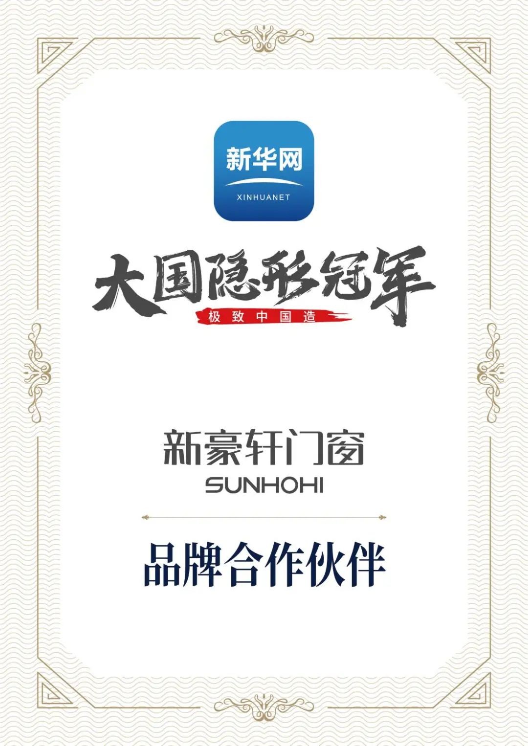 新豪轩门窗凭借先进智造、创新技术、卓越品质,跑出了门窗行业高质量发展"加速度",成为首家入围新华网《极致中国造·大国隐形冠军》的品牌。新华网作为国家的一级媒体,这是对新豪轩门窗冠军实力的权威认可,也彰显了我们在行业中的领先地位。通过大国隐形冠军的品牌名片让广大消费者敢于消费、愿意消费、放心消费。