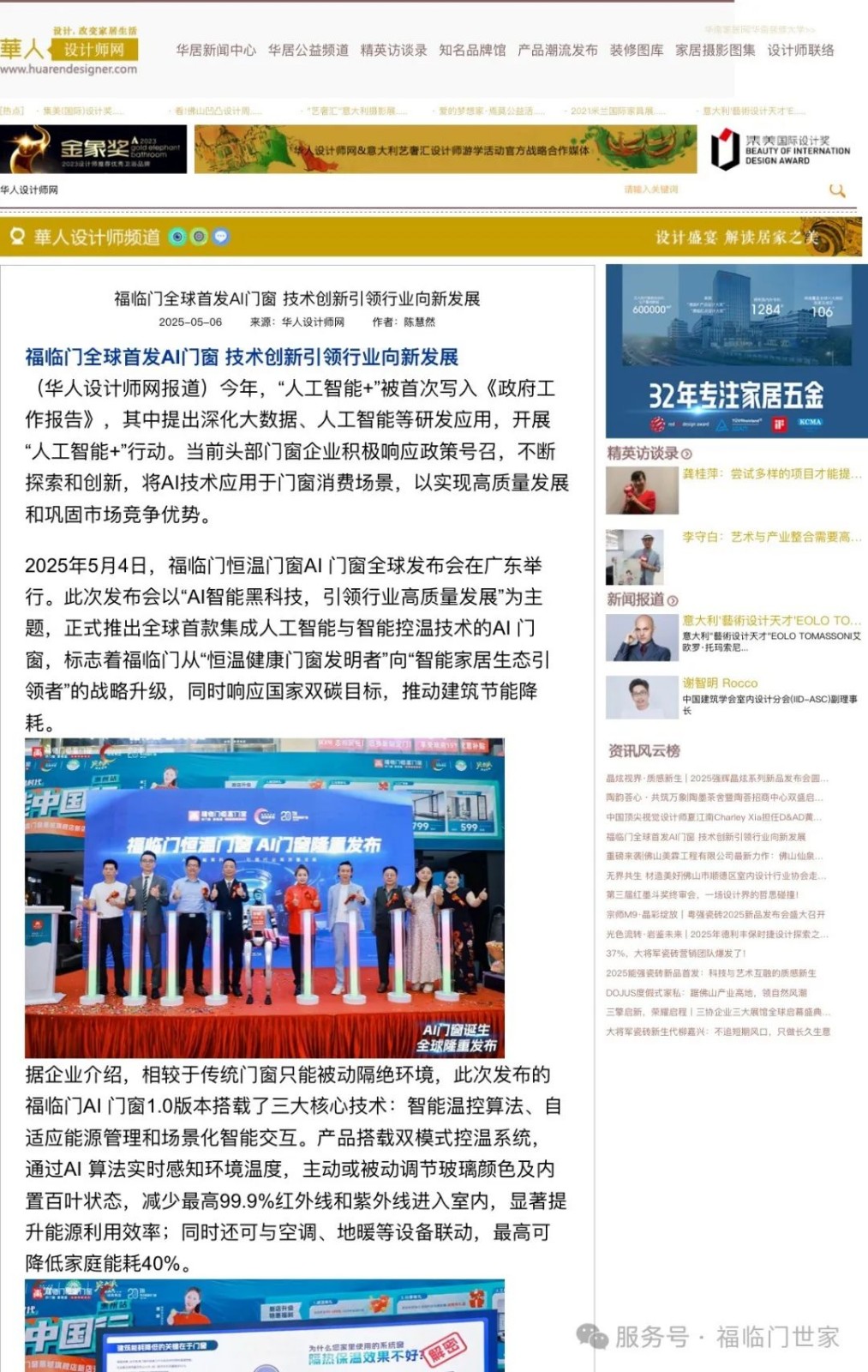 连日来,广东广播电台、羊城晚报、广东新设计、大家居网、新浪家居、搜狐家居、凤凰网家居、广东广播电视台、华南家居网、大平洋家居、惠州新闻在线、惠州之窗、华人设计师网、南方企业新闻网、深圳晚报、中华家居网、中国家居新闻网等多家知名媒体纷纷聚焦此次活动,通过文字的细腻描绘、图片的生动呈现、视频的直观展示,对发布会盛况及AI门窗的产品特性进行了全方位、深层次的报道,让更多人领略到这场科技盛宴的魅力。