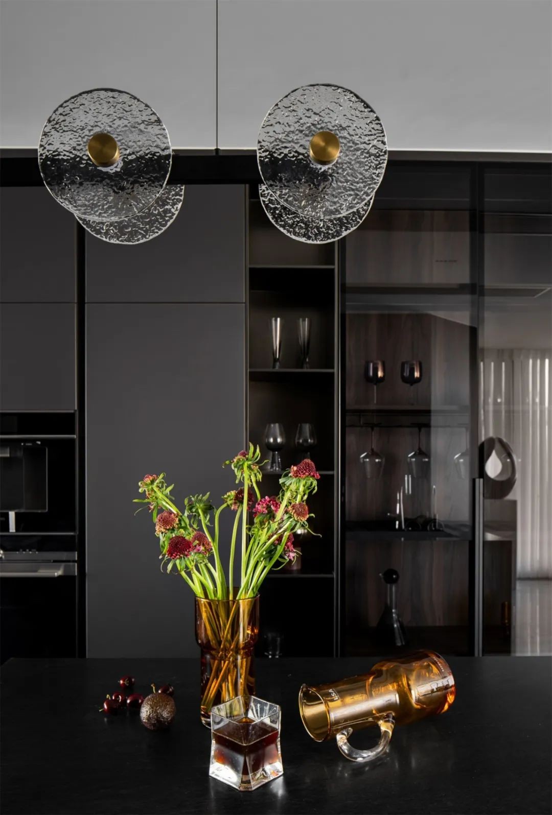 同时搭配精致吊灯,花艺装饰,既显时尚大气,展现现代家居对空间利用与美学体验的双重追求。