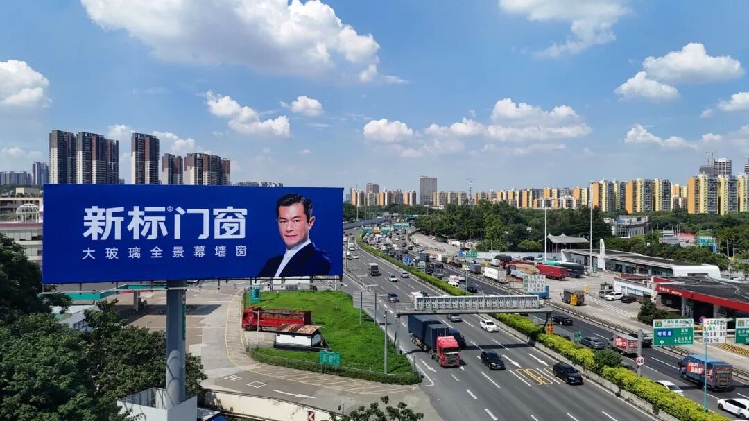 与此同时,新标门窗以“经济活力之心”广州为核心城市支点,在广佛肇高速等黄金通道打造极具视觉冲击力的“新标蓝”高炮广告矩阵。傲然矗立的巨幅广告化身为高速沿线的靓丽风景,将品牌形象深植于飞驰的车流与城市的记忆之中,速度与视野碰撞,品牌与城市共鸣,实现新标门窗与高品质生活的深度对话。