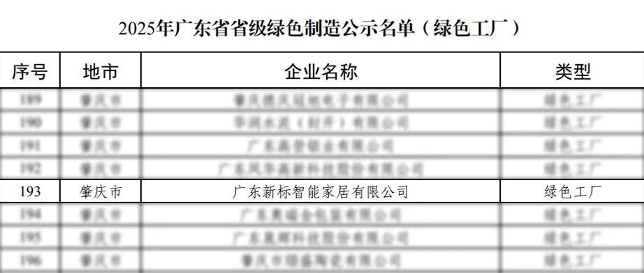 近日,广东省工业和信息化厅公示了2025年广东省省级绿色制造名单,新标门窗凭借在绿色制造与可持续发展方面的突出表现,在多轮专家评审中脱颖而出,成功入选「广东省绿色工厂」,以扎实的实践成果,树立了行业绿色新标杆。