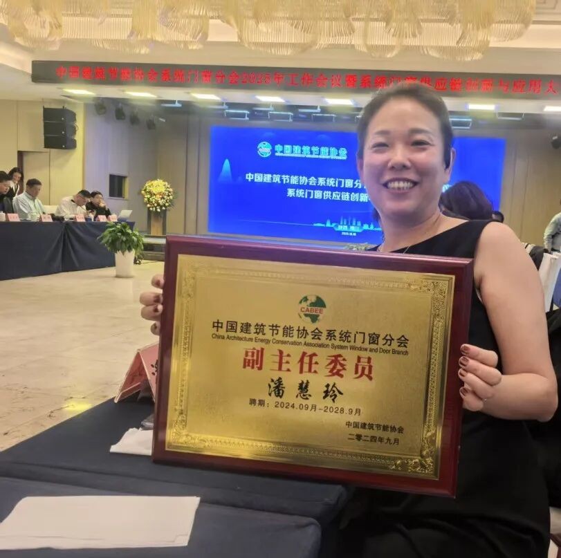 在当选发言中,董事长潘慧玲表示:"我将全力以赴,与业界同仁共同推动系统门窗行业的标准化、高质量发展,为实现国家'双碳'目标贡献行业力量。"