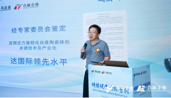 卓马集团总经理冼伟潮代表企业致词。他分享道,卓马深耕陶瓷领域多年,始终以“技术攻坚”为核心竞争力,此次双预应力强韧化技术的突破,是企业“以创新破局”的生动实践——从技术构思到落地攻坚,卓马始终以民族陶瓷企业的担当,为行业树立“技术驱动发展”的标杆。