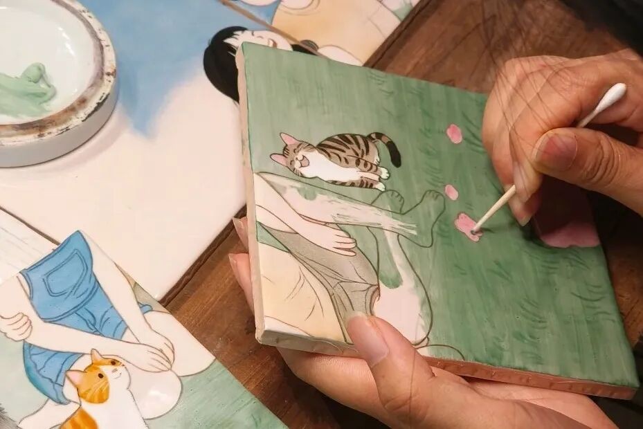 Set up a DIY interactive area for handmade tiles, and you can experience the tile making process by yourself.