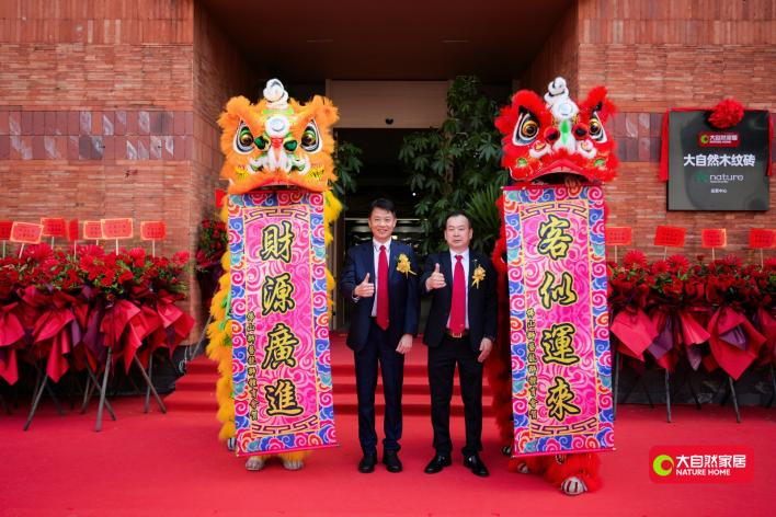 活动在祥瑞的醒狮点睛与采青纳福中拉开序幕。大自然家居董事局主席佘学彬先生与星系家居董事长、大自然木纹砖运营中心总经理王簪泽先生共同为祥狮点睛,寓意事业鸿运当头,宏图大展。