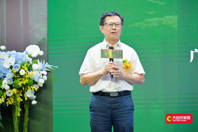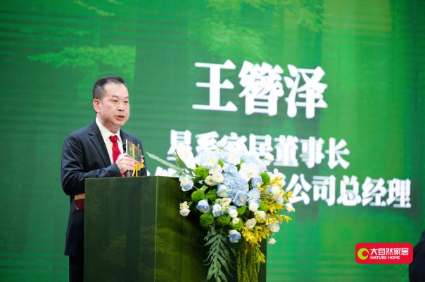 随后,大自然家居董事局主席佘学彬先生登台分享战略动机:为满足消费者对“风格统一、功能复合的整体空间”需求,品牌以“地面空间整体解决方案服务商”定位,将30年木地板技术注入瓷砖研发。他强调,此跨界旨在“放大木优势”,使木纹砖兼具木材温润质感与瓷砖耐用性能,集团将依托品牌积淀与全域营销资源,全力开拓新市场。