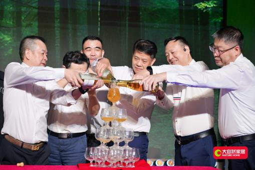 活动尾声,“尊享时刻·答谢晚宴”在温馨热烈的氛围中举行。大自然家居董事局主席佘学彬先生登台致祝酒词,感谢合作伙伴风雨同路,并展望以木纹砖为新起点的大家居战略未来。运营中心核心管理团队与嘉宾集体举杯共庆,晚宴期间穿插精彩演艺与多轮抽奖环节,现场气氛真挚热烈,为全天活动画上圆满句号。