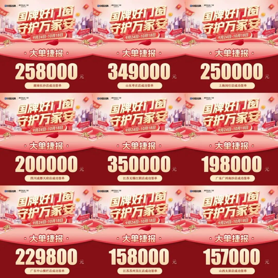 金秋送爽,双节同庆。自9月24日至10月18日,“国牌好门窗·守护万家安”国庆中秋主题促销活动圆满落下帷幕。活动期间,我们凭借扎实的产品品质、真诚的优惠政策和全方位的服务支持,累计达成2288笔订单,销售总面积突破53073㎡,品牌口碑持续升温。