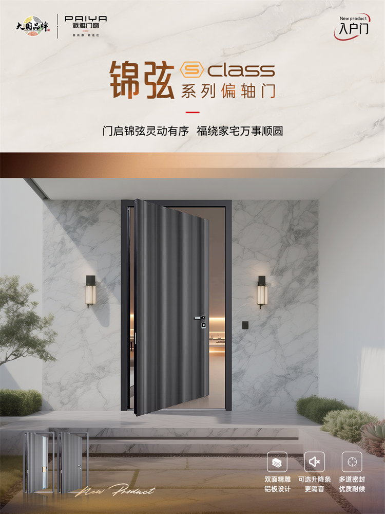 S Class锦系列偏轴入户门,拥有偏轴(门扇轴心偏向门一侧)和中轴(门扇轴心位于中心)两种开启方式,开合大气美观,契合风水“聚气、纳宝、增运”的核心诉求,助力事业、财运、健康持续向好。