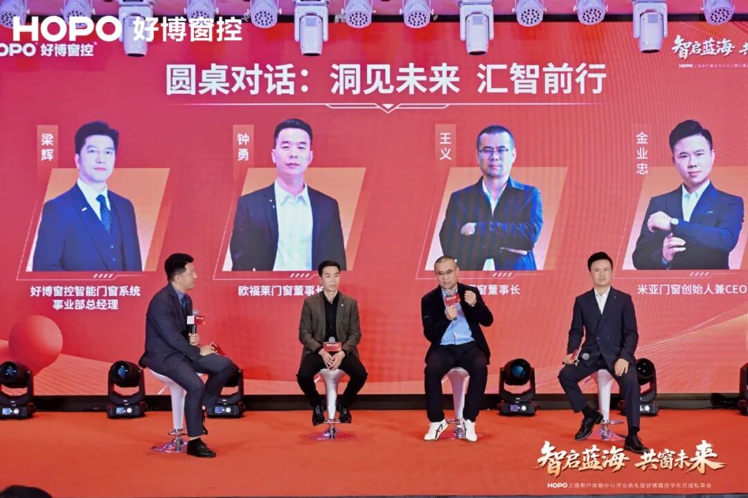 下半场的“面对面”圆桌对话将整场活动推向思想高潮。两场主题对话紧扣产品创新与智能化演进、渠道多元与区域深耕、服务标准与破卷突围等核心议题。数位门窗企业家分组登场,与主持人围坐畅谈,既有对“内卷困局”的直面剖析,亦就智能化落地、渠道精耕与服务升维提出切实可行的破局路径。