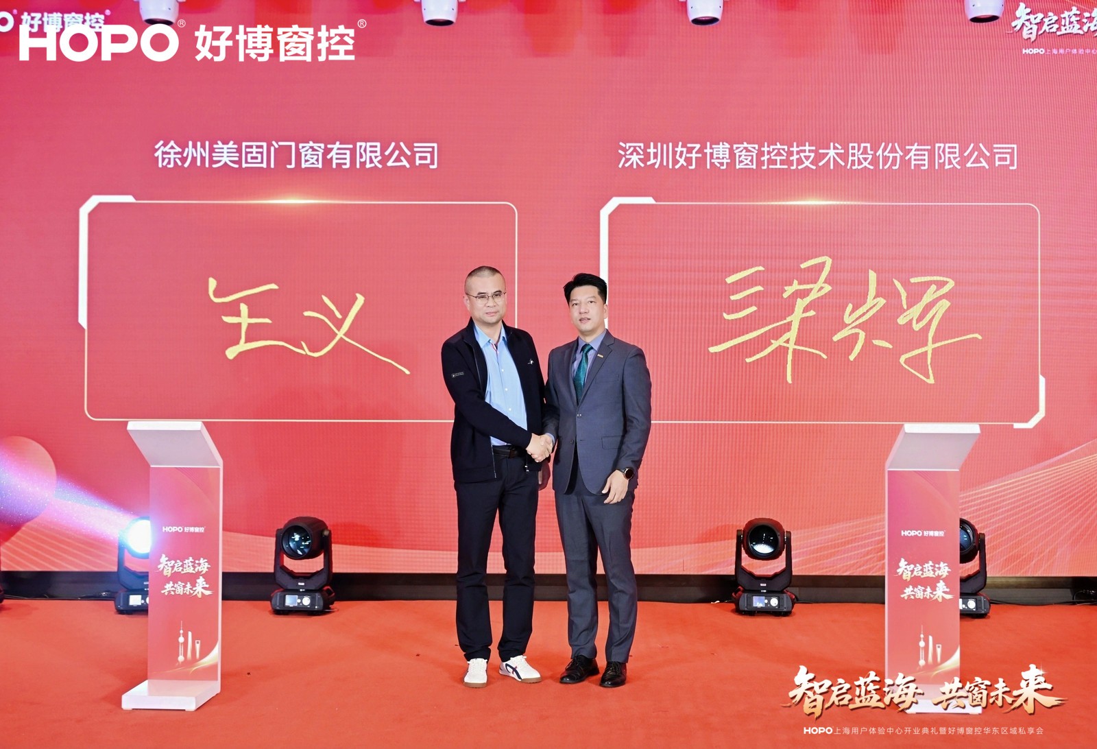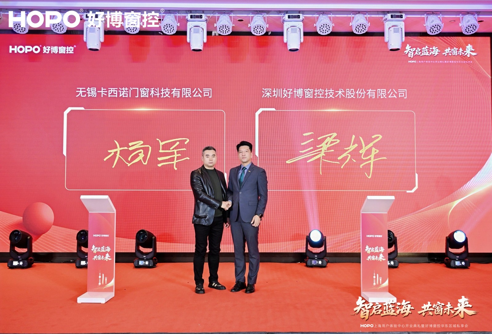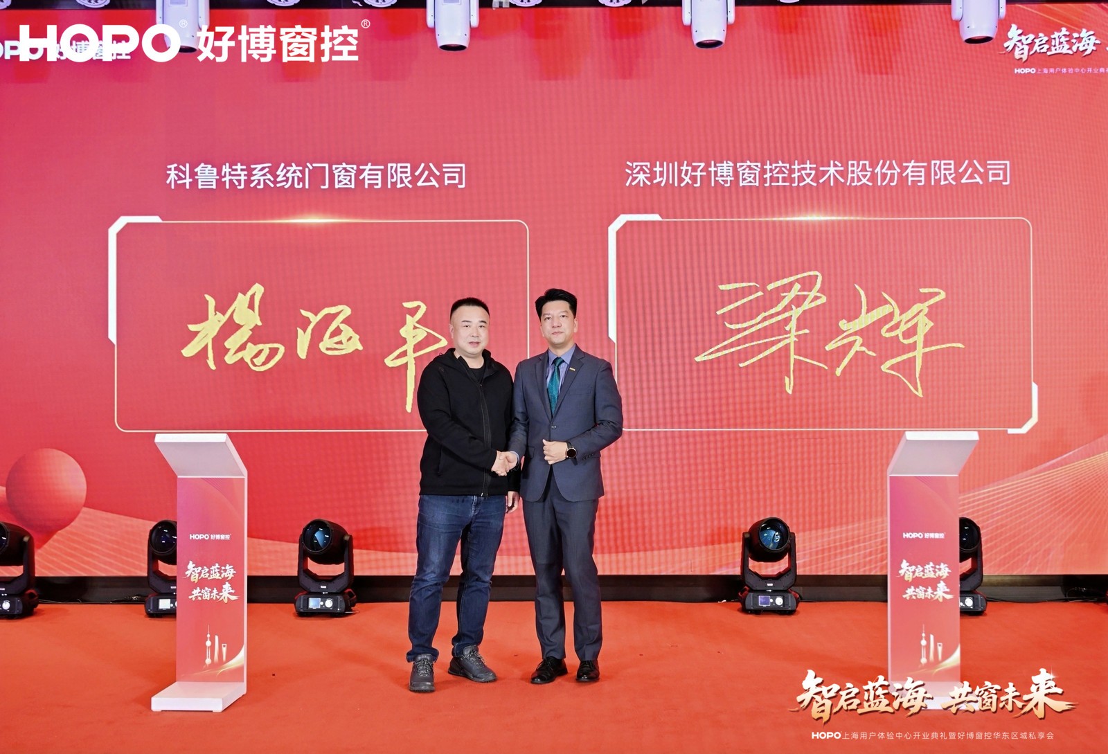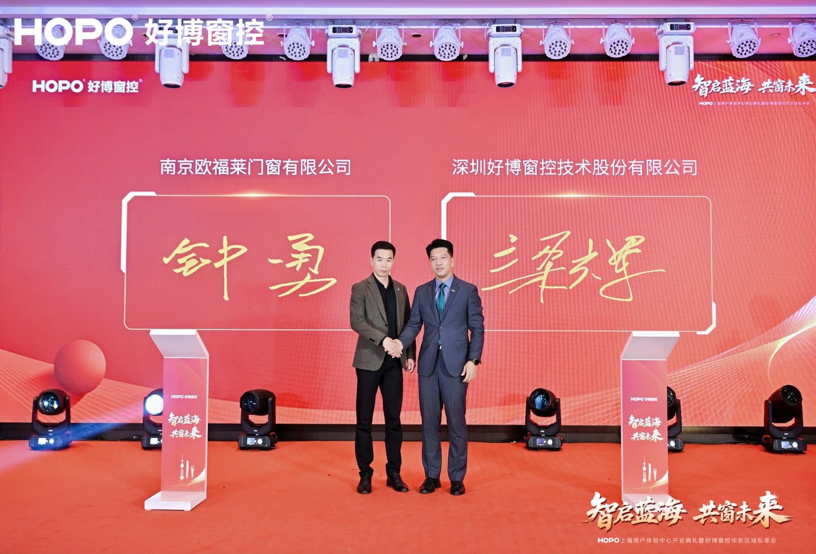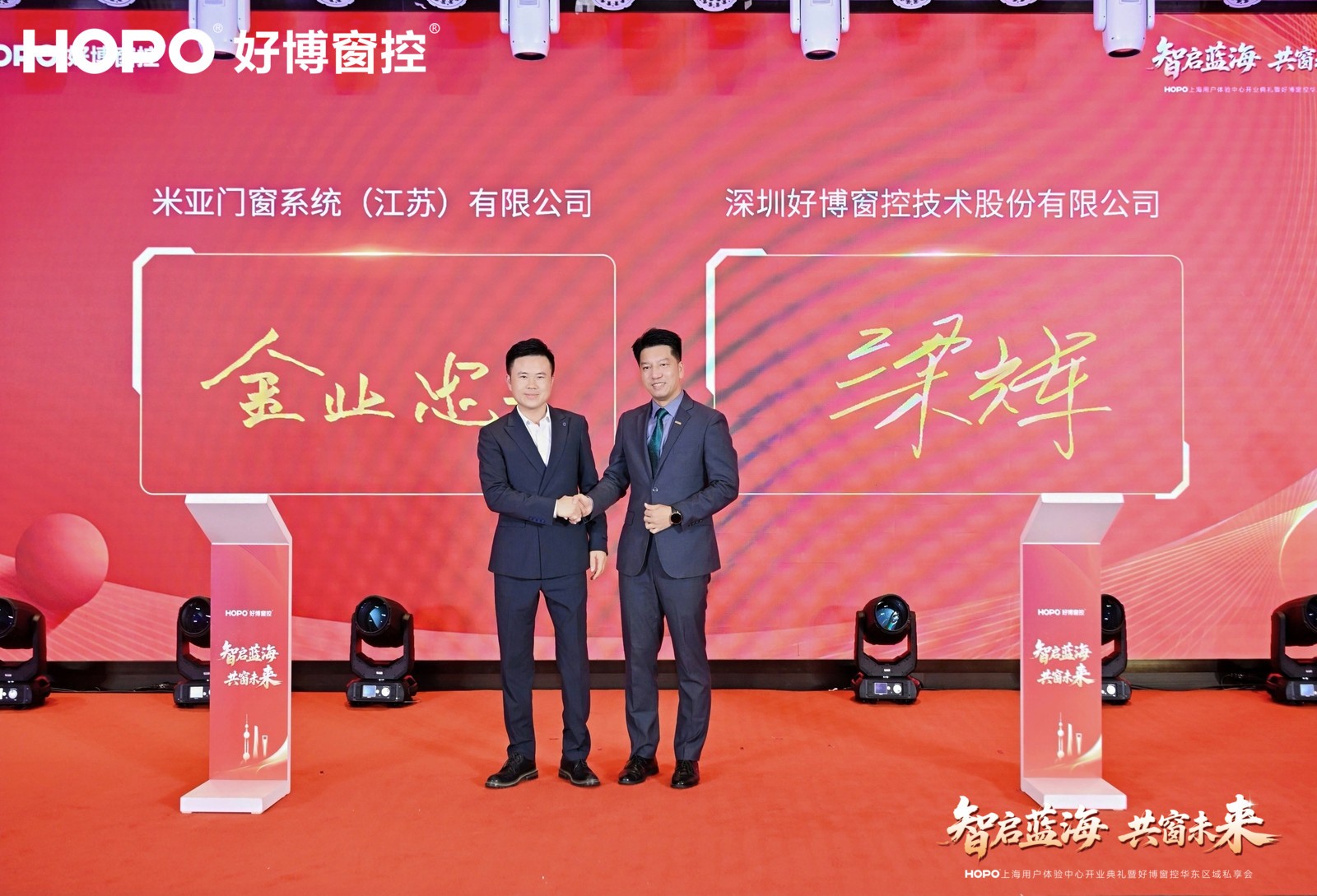 现场,欧福莱门窗、米亚门窗、科鲁特系统门窗、卡西诺门窗、美固门窗五家标杆企业与好博窗控完成战略合作签约。落笔为信,不仅是对好博窗控产品与服务的认可,更是对“协同生态”理念的共同践行。