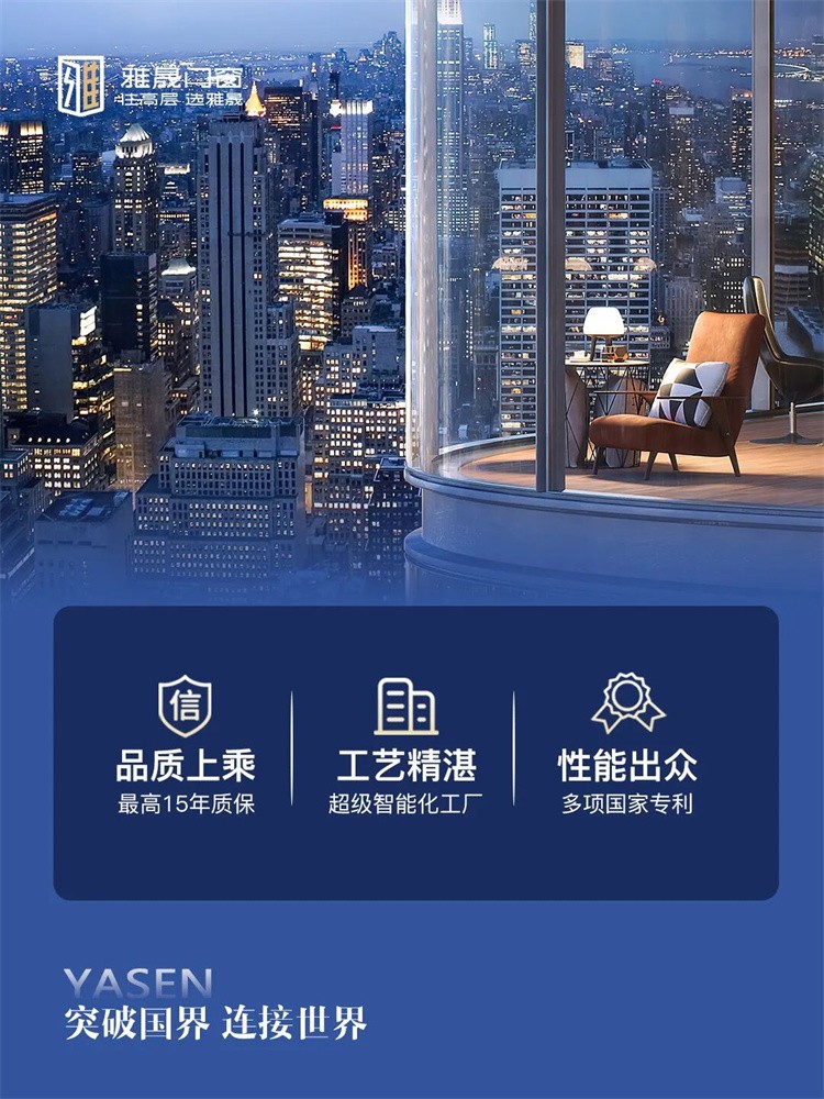 住高层,选雅晟!雅晟门窗专注高端系统门窗定制,成立高层门窗研究中心,发布高层门窗白皮书,产品获美国缪斯奖等多项国际设计奖项。雅晟门窗致力于为高层用户提供更系统的门窗解决方案,是铝合金门窗安装交付参编单位,中国系统门窗十大品牌!