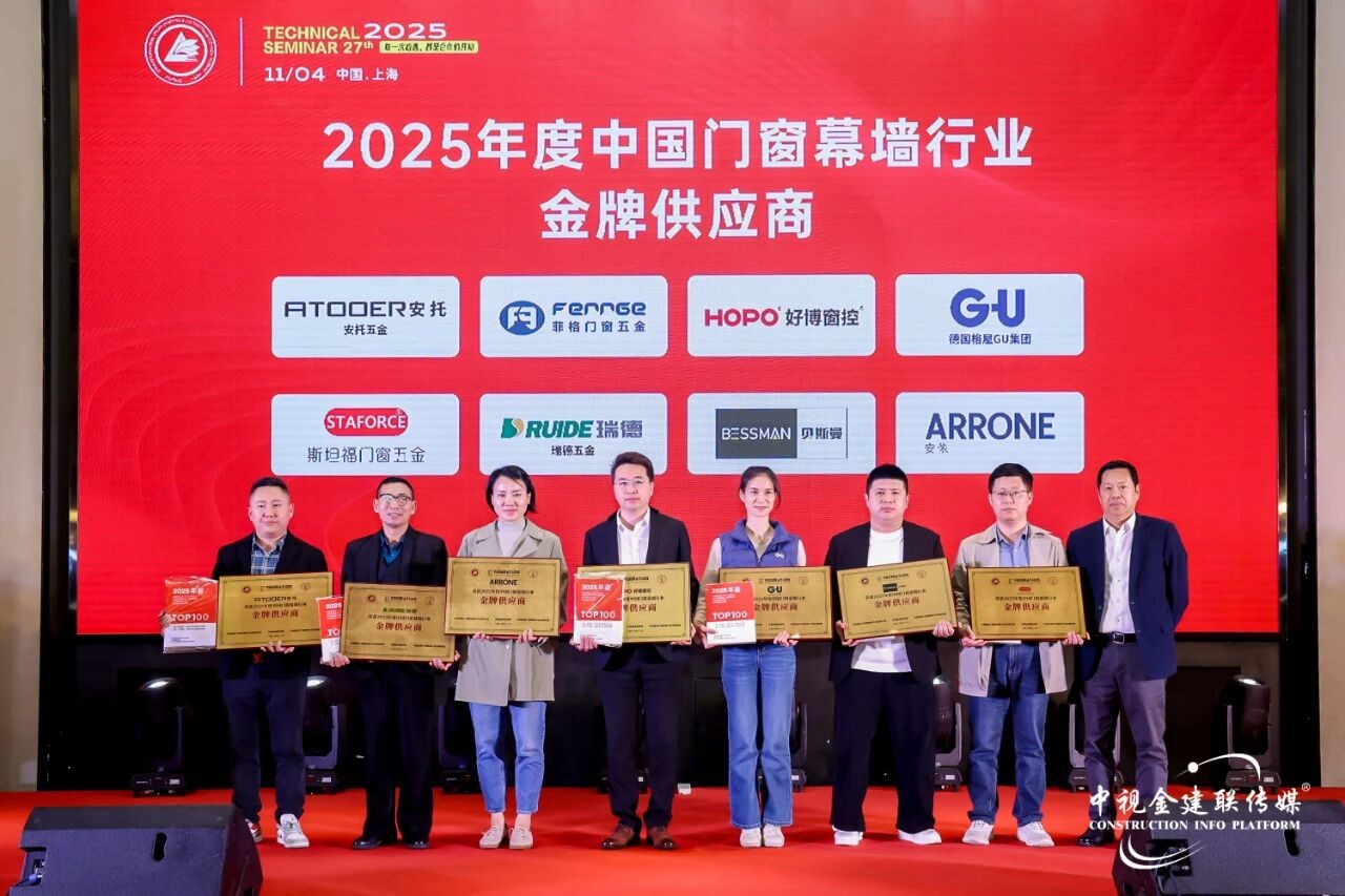 11月4日晚,第27届中国国际门窗幕墙技术交流研讨会颁奖典礼在上海隆重举行。作为行业极具公信力与影响力的年度盛会,本届大会汇聚产业链上下游权威力量,现场揭晓多项重磅奖项。HOPO好博窗控凭借卓越的产品力、稳定的交付能力与持续的系统创新,荣获“2025年度中国门窗行业金牌供应商”称号;好博窗控产品项目管理中心总经理刘治国因在行业的突破性贡献,被授予“2025年度中国门窗行业科技创新杰出人物”称号。