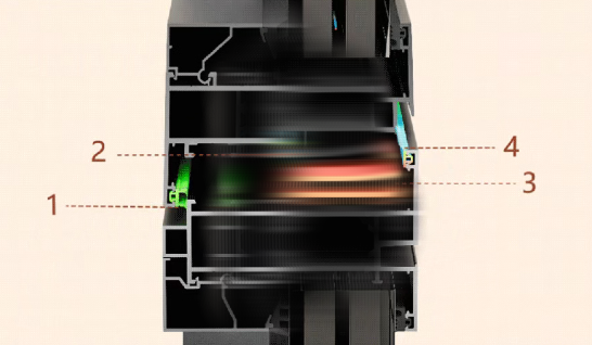 不仅如此,搭配隔热腔体发泡填充技术,如同给窗户穿上了“保暖衣”,进一步提升了型材的整体隔热性能,更关键的是垂直等温线科学的结构设计,温度传递路径更为曲折复杂,最大化地减少热量流失,再结合四重密封技术层层锁温,真正做到让室内暖意不与冷空气“分享”。