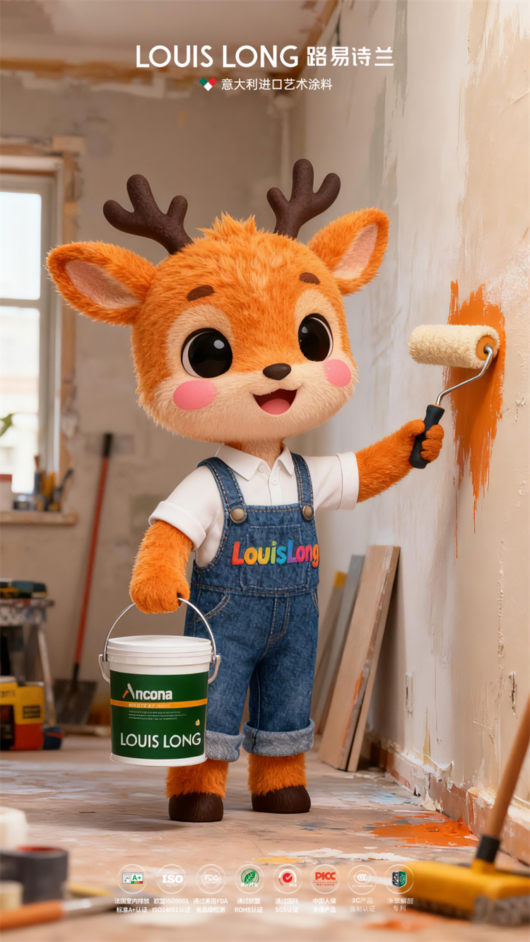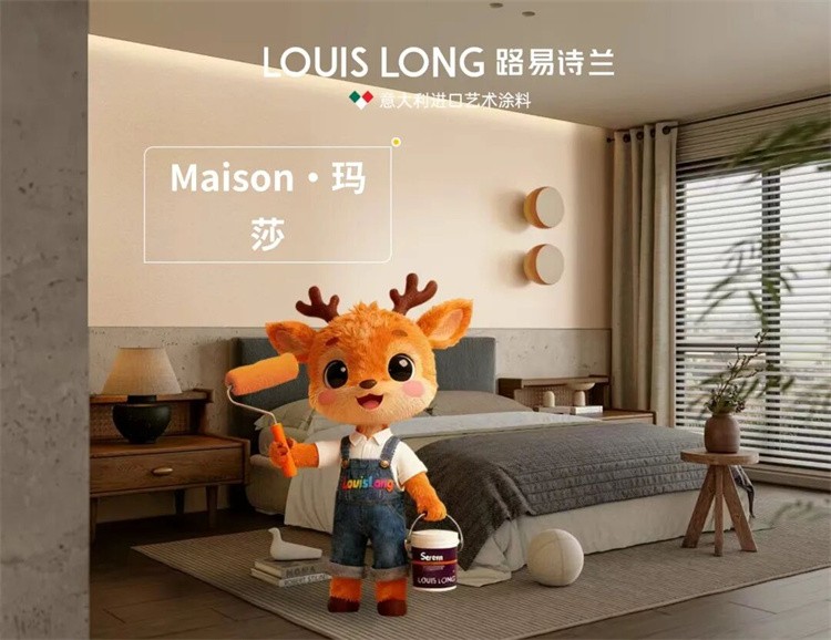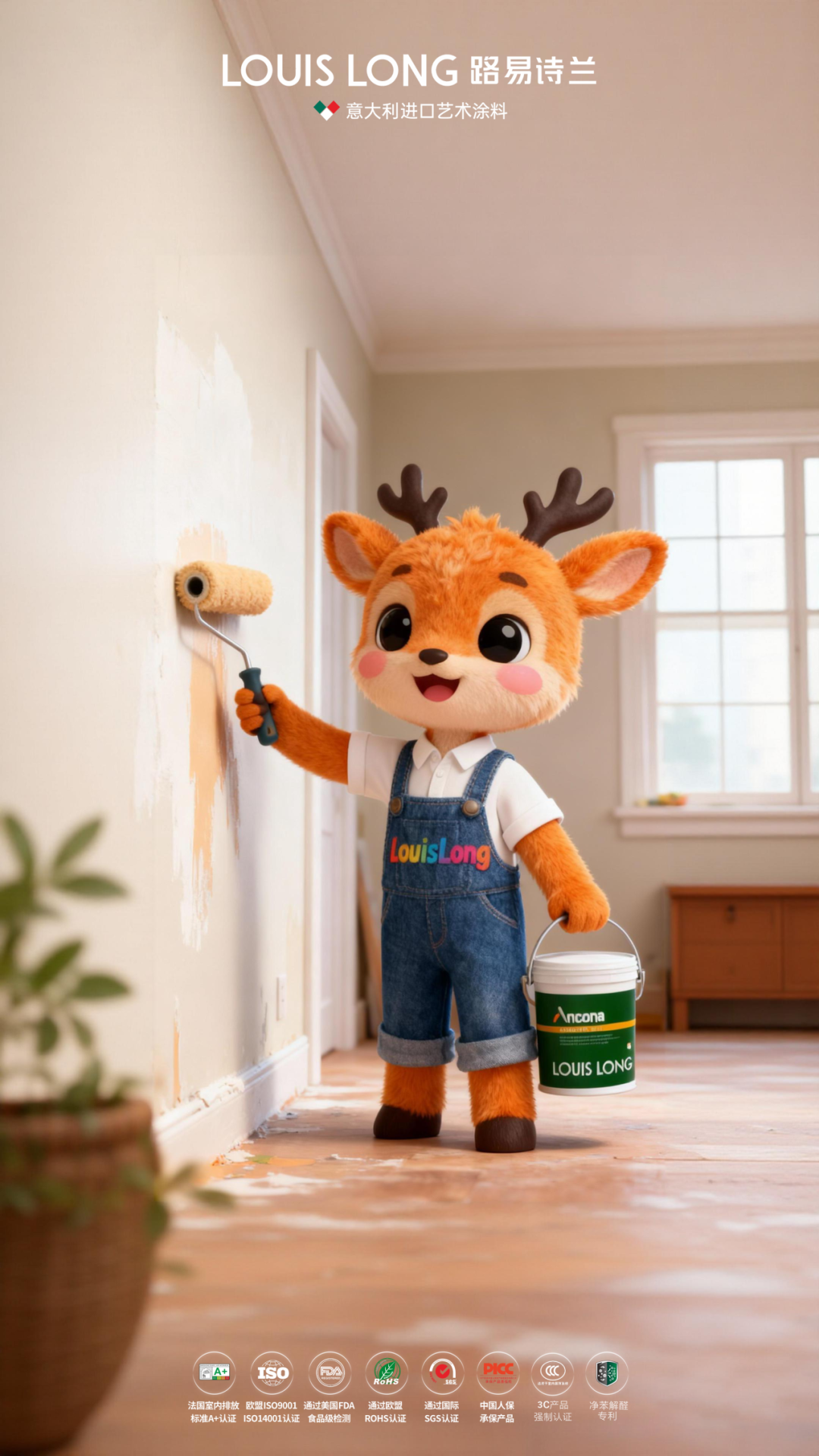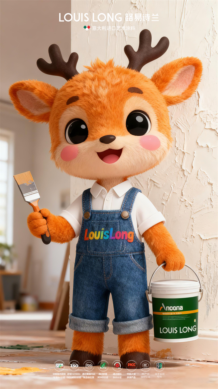 鹿在东方文化中象征“灵动”“自由”,恰如路易诗兰品牌的核心理念——以自然为画布,用艺术重塑生活。小鹿的亲和姿态,传递着品牌“让艺术触手可及”的初心,打破传统涂料的冰冷感,让墙面成为承载情感与创意的鲜活载体。