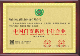 荣获"中国门窗系统十佳企业"这一重量级荣誉,是业界对皇雅门窗专业实力的高度认可。作为门窗一线品牌,企业凭借精湛的工艺技术、创新的产品设计和完善的服务体系脱颖而出。