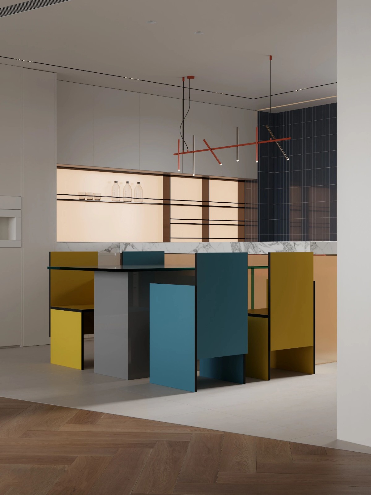 色彩是艺术的灵魂,也是生活的调味剂。在这个空间里,大胆的色块与柔和的色调交织,形成了一种独特的视觉冲击。无论是明亮的黄色、深邃的蓝色,还是温暖的红色,每一种颜色都在诉说着不同的情绪与故事。