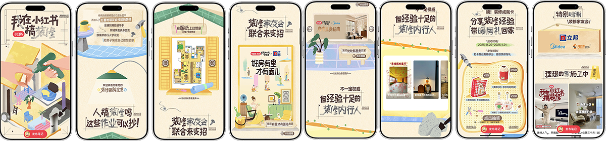 基于对用户装修需求的深度洞察,小红书家居垂类以2025年装修旺季节点为切口,精准锁定新装修、新改造需求人群,发起#我在小红书搞装修长线IP。以用户装修时间线为核心脉络,拆解不同阶段的痛点需求与实用干货,通过内容、品牌与用户的深度联动,为当代装修人量身定制更全面、更落地的「装修实用指南」。