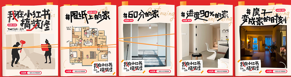 在#我在小红书搞装修话题主阵地,由垂类官方账号@装修薯领衔话题,邀请用户以时间为轴,共同记录家的每一步成长:从图纸上的家勾勒理想轮廓,到60分的家初具雏形,再到进度90%的家即将完工,最终定格在“房子变成家”的温暖时刻——在这里,每个阶段的装修里程碑都被看见,真实的家装体验与情感共鸣交织,共同编织出「家」从蓝图到现实的鲜活故事。