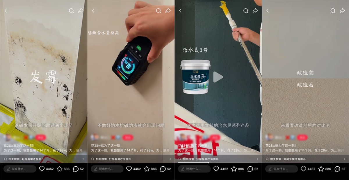 仅聚焦单点问题的表面解决,易让用户陷入反复踩坑的困境,难以实现长期安心居住。为此,《我在小红书搞装修》联合立邦,层层拆解墙面装修的每个环节,从里层腻子怎么选,湖边自建房如何抗碱、防霉,怎么找平,面漆怎么选……从告诉消费者“产品好用”,到告诉消费者“怎么用才有用”,提供了“从里到面”的全套解决方案,让墙面问题从根源上得到解决,让家的治愈感更持久。