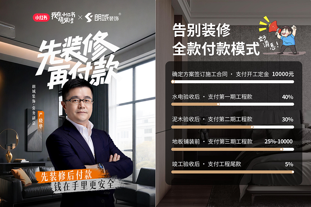 装修不止于施工,更关乎信任与温度。上海朗域装饰直击装修行业「增项乱象」、「分包失控」、「售后推诿」等痛点,率先推出「先装后付」模式,让#先装修后付款从口号变为可落地的保障,更创新性开启「高管直面用户」的透明化沟通机制,让温度与诚意穿透行业信息差。