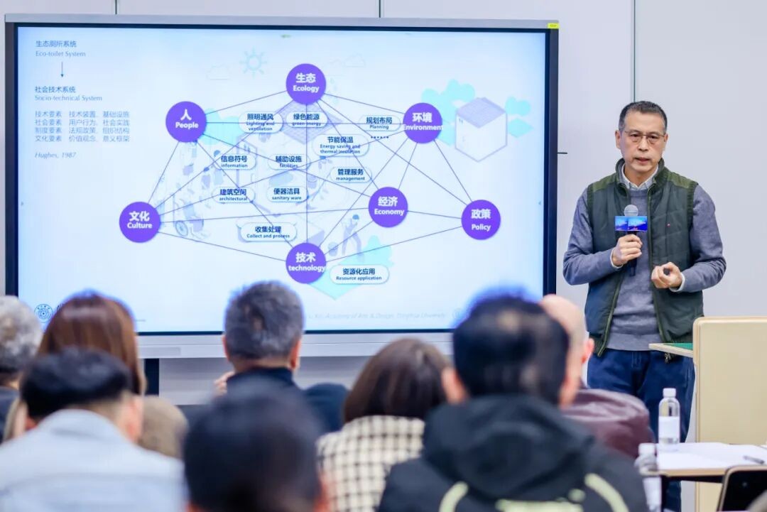 刘新以《可持续转型与生态厕所设计实践》为题,提出设计应从产品优化转向社会—技术系统的整体变革:以ESG与“双碳”为方向,贯通材料来源、制造排放、使用与回收的全生命周期。他强调分布式思维(如离管网处理、太阳能与储能结合)可重塑卫生设施与人居形态;方法上以系统设计框架统合建筑、产品、信息、运营和末端处置,兼顾弱势群体与地域文化。他与团队自2015年起在城市、乡村与藏区实践生态厕所,技术路线包括粪尿分离、无水或少水、微生物减量化、低成本在地建造等,并以社区参与和行为引导提升接受度。他呼吁设计师走出办公室,以系统思维联合政府与企业,把“卫生—健康—资源化”贯通,让可持续成为未来人居的底层能力。