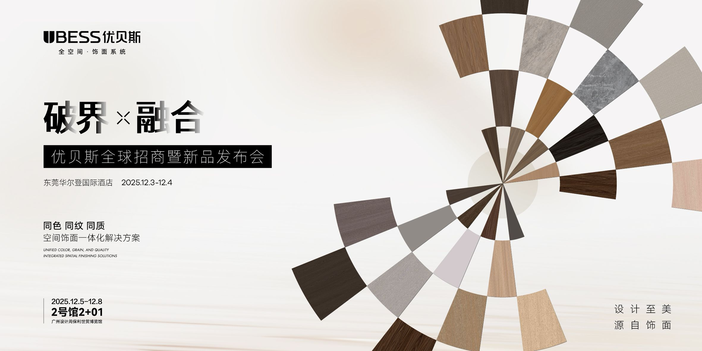 12月3日,东莞华尔登国际酒店高朋满座、思想激荡,“破界·融合——优贝斯全球招商暨新品发布会”在此盛大举行。来自定制家居产业链上下游的行业大咖、企业代表、国际设计师及全国渠道伙伴齐聚一堂,围绕饰面材料的创新突破、设计美学与产业协同展开深度对话,共同探索中国高端饰面一体化解决方案的崭新路径。