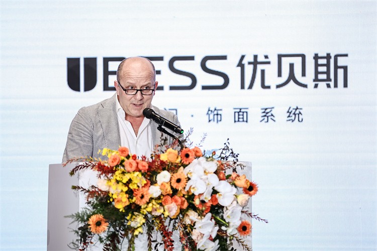 活动在热烈的氛围中拉开帷幕。优贝斯董事长罗志明在致辞中提到,当下的家居行业,正处在一个“内卷与机遇并存”的十字路口:一方面,同质化产品扎堆、各环节各自为战的问题越来越突出,让企业陷入“价格战”的内耗,也让客户难以获得真正省心的一体化解决方案;但另一方面,随着高端市场的崛起,“门墙柜一体化”“水漆定制普及”成为新的消费趋势,这恰恰是行业升级的突破口。优贝斯的方向始终坚定——不只为客户提供饰面材料,更要帮他们解决实际难题。