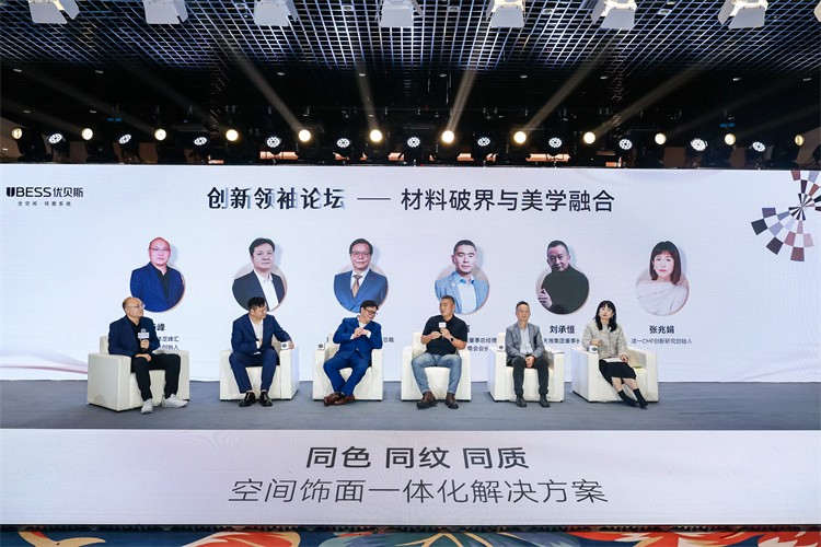 在“创新领袖论坛”论坛对话环节,vifa威法董事总经理王超、德国夏特(Schattecor)销售市场总裁周维均、优贝斯总经理吴新游、天湘板业董事长刘承恒、涟一CMF创新研究创始人张兆娟以及对话主持人定峰汇创始人杨峰共6位业内大咖立足自身领域,围绕“创新”内容展开了深入探讨,不仅分享了前沿实践新的突破,更直面材料与美学融合过程中的痛点,并提出了富有建设性的解决思路。