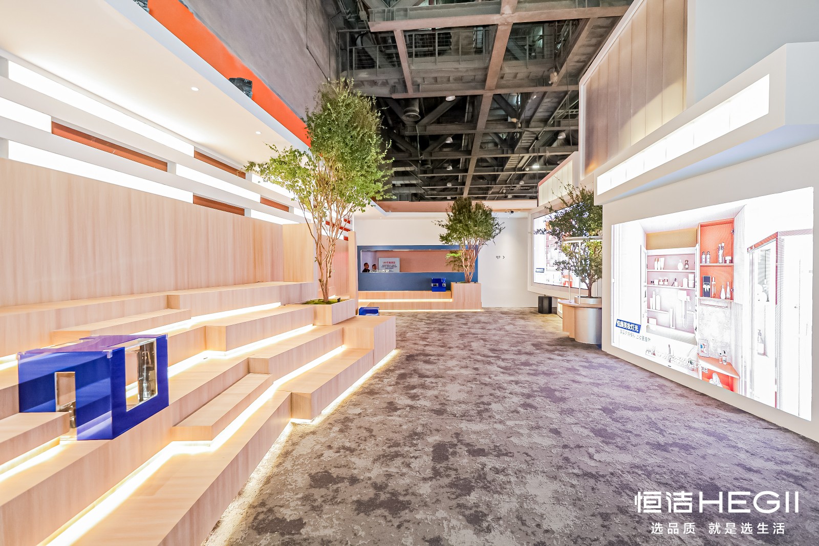 展馆亦以多处巧思完善体验:咖啡休闲区营造轻松氛围,五色马桶与“恒洁蓝”装置呈现品牌色彩哲学;共享活动区以阶梯与双屏打造沉浸内容场;楼梯与出口以简洁导引与自然元素收束动线,使观展在转折与回望间更加完整。