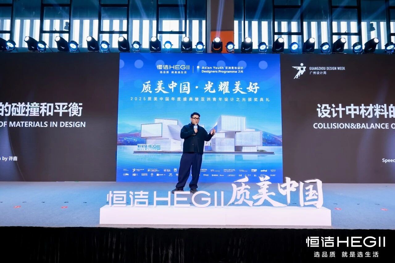 在“质美中国·光耀美好”的主题分享中,恒洁集团品牌营销高级副总裁阮伟华向到场嘉宾和合作伙伴表示感谢。恒洁与广州设计周合作已进入第三年——连续入驻超级品牌策源IP概念馆,三度与谢英凯老师共创恒洁H-SPACE,屡获国际奖项。同时,恒洁深度支持“亚洲青年设计之光”,与导师团共同见证青年设计师在作品、视野与表达上的持续成长。青年设计师正代表着未来极为宝贵的力量。