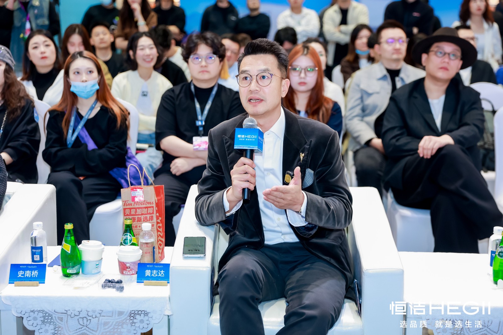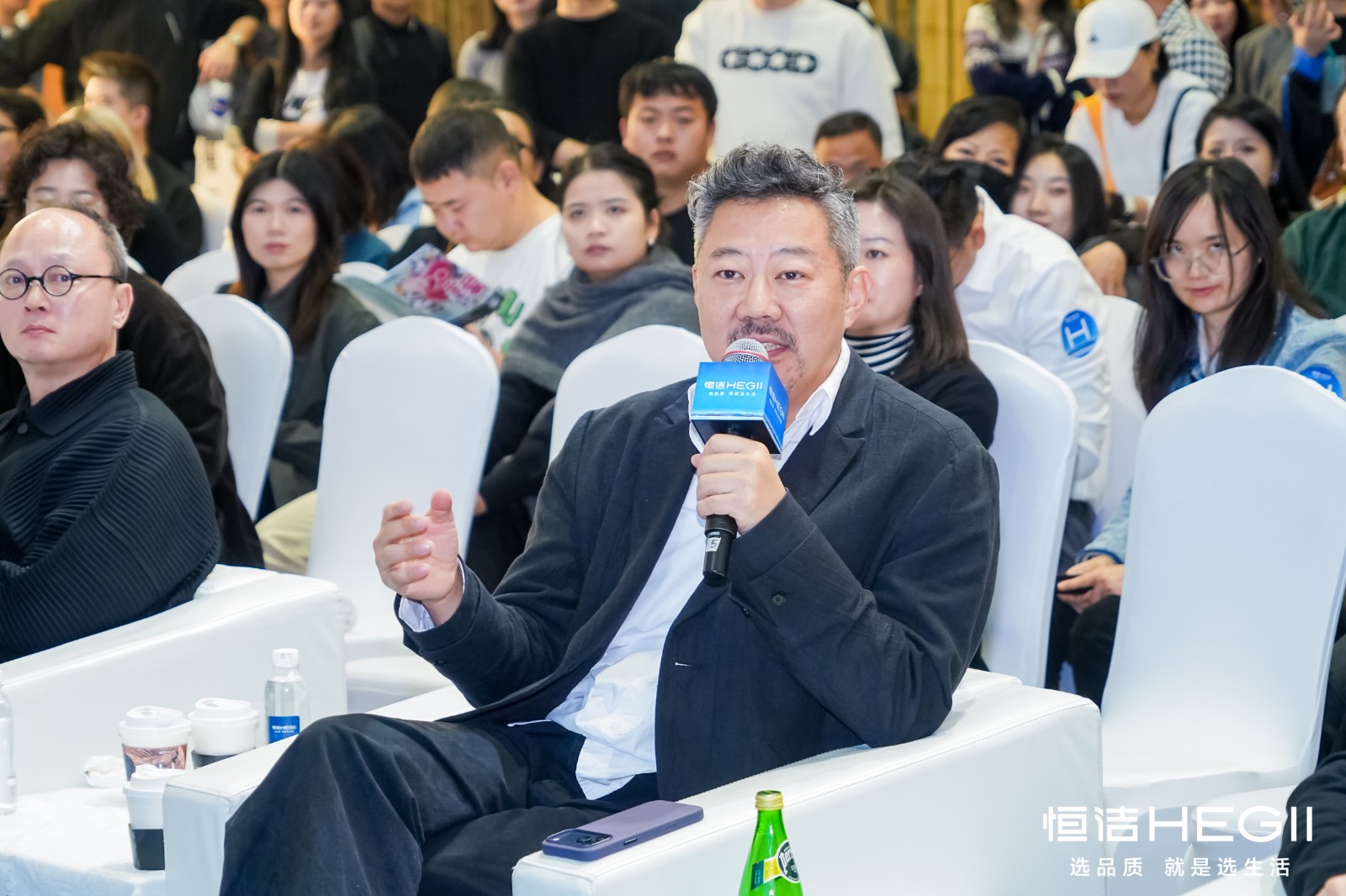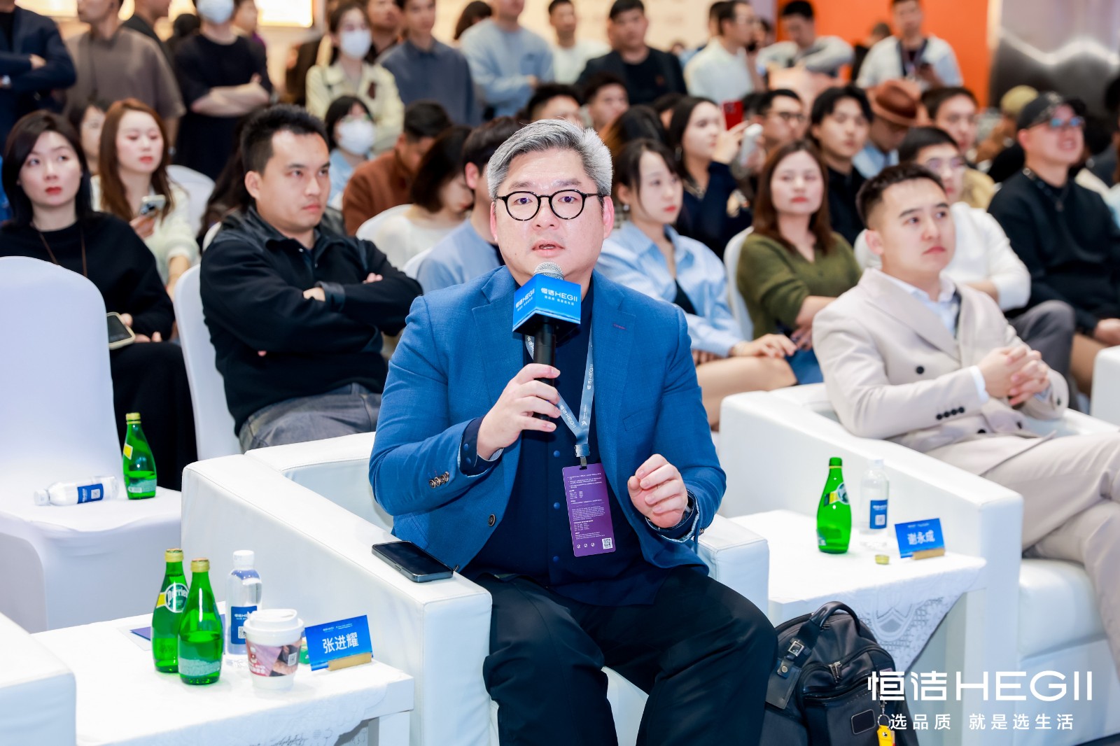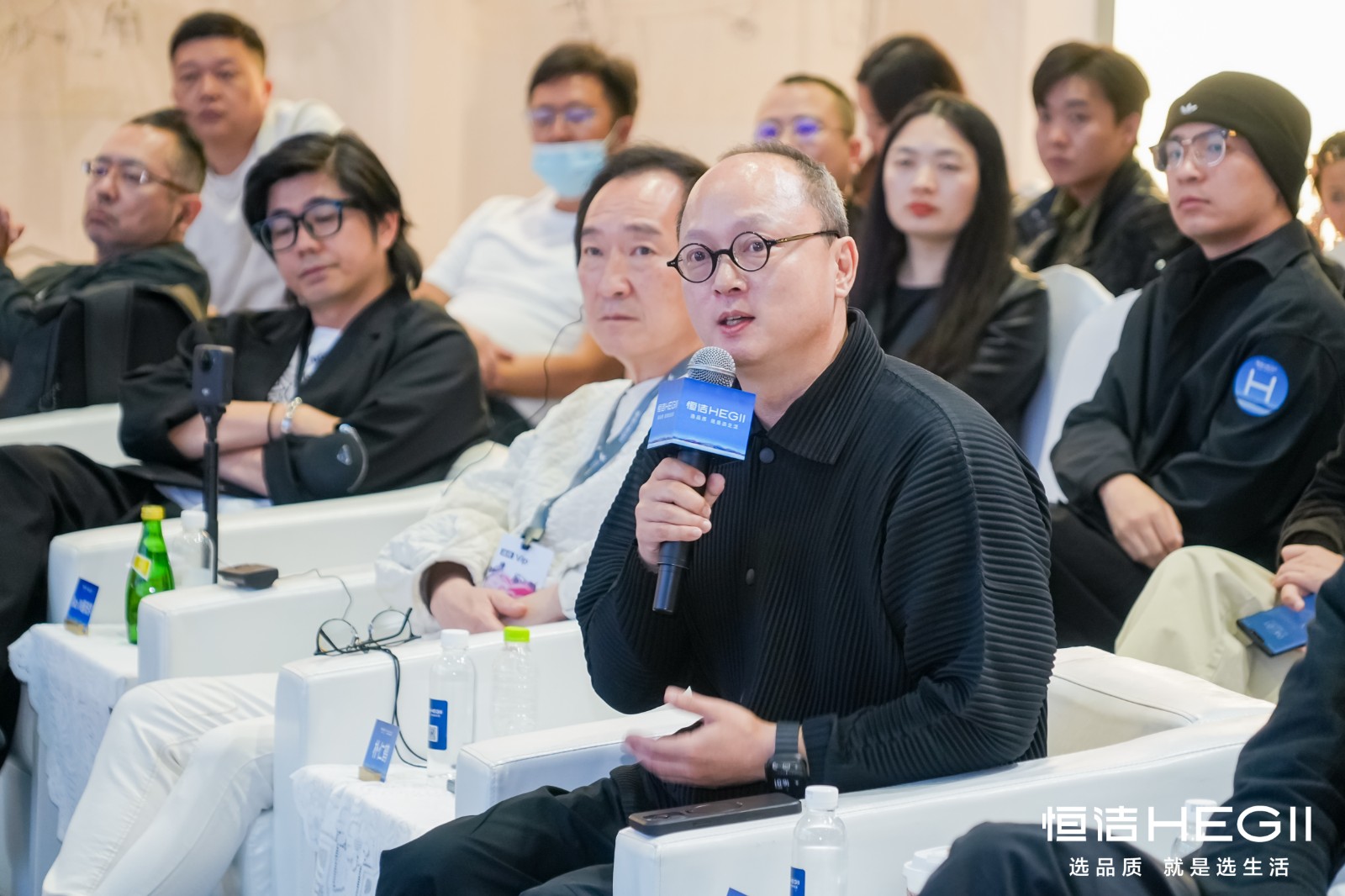 知名设计师谢英凯在现场分享了恒洁H-SPACE的设计理念。他回顾与恒洁从“遇见”“行影之间”到今年主题的合作历程,每一届都在叙事、体验与产品呈现上不断突破。今年以“此间一生”为切入,希望让大众以更贴近生活的方式理解卫浴场景与人生阶段的关联。