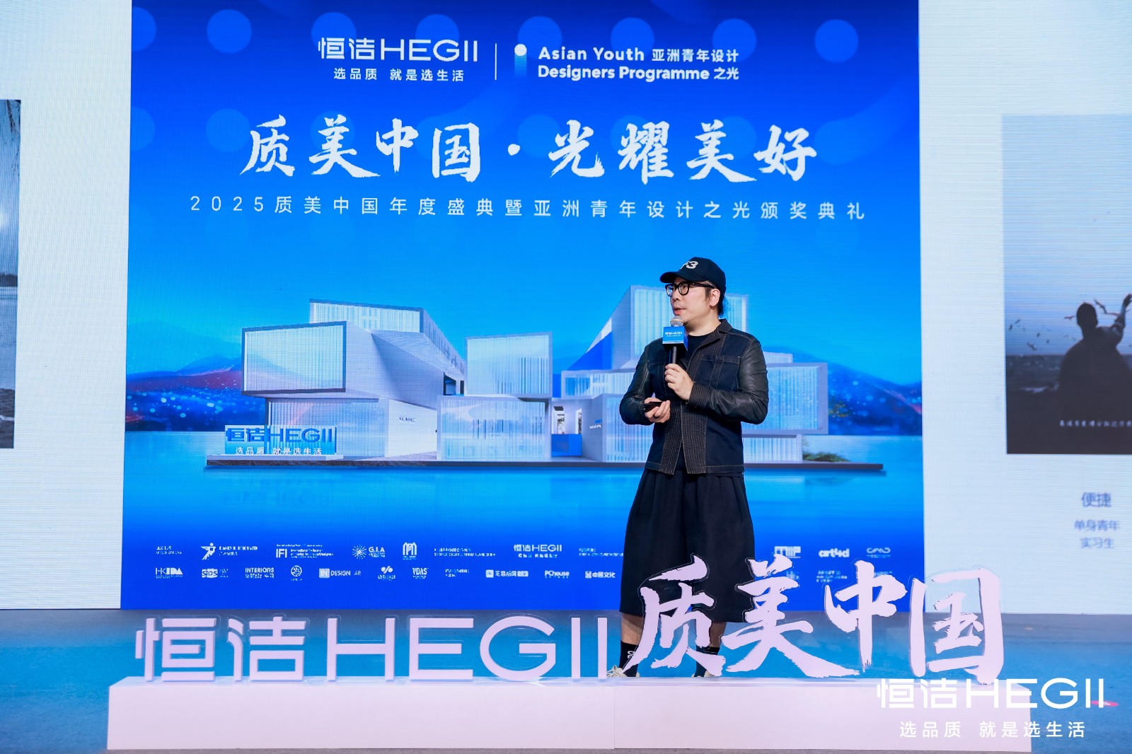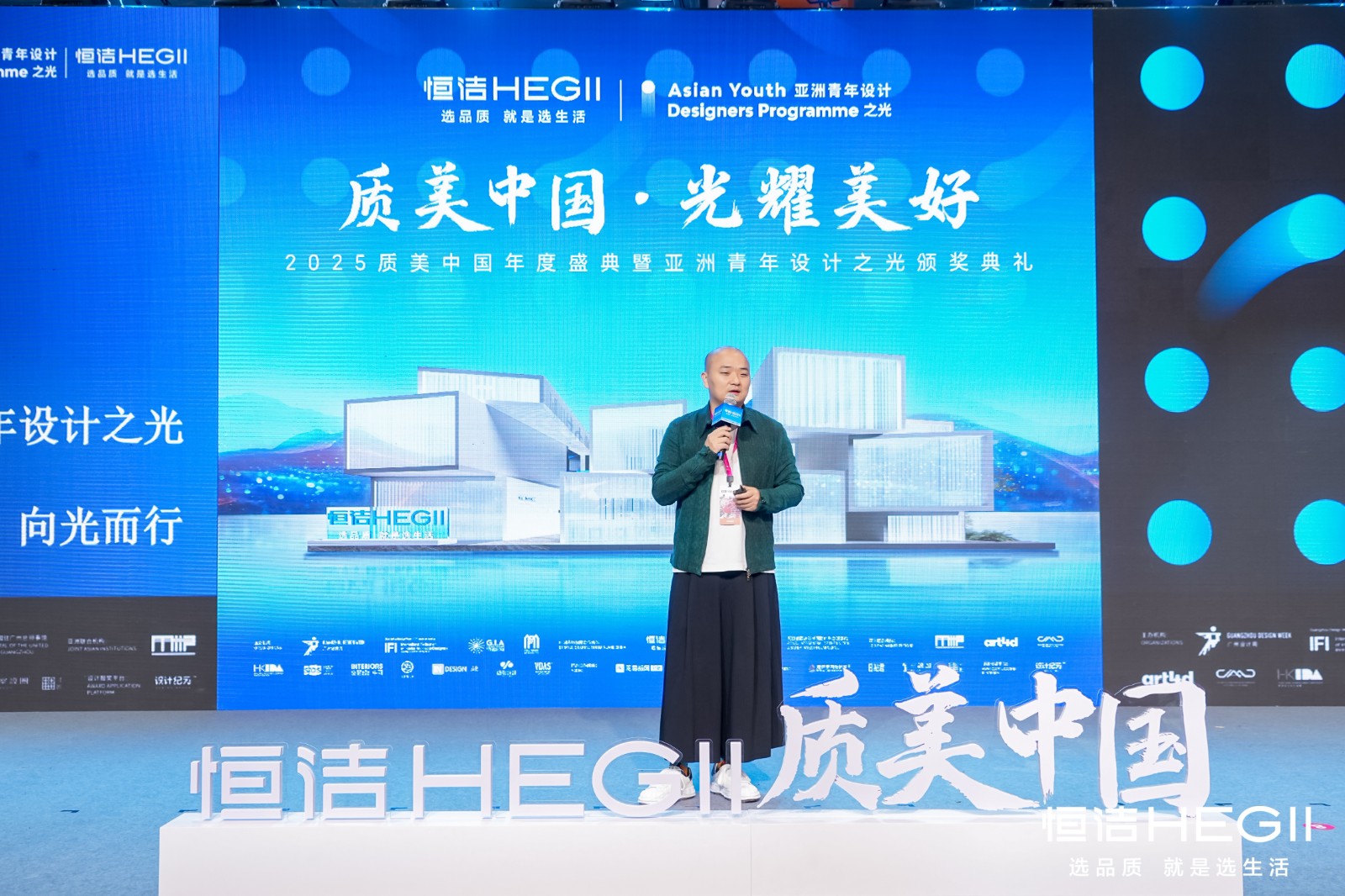 在“质美中国·光耀美好”的主题分享中,恒洁集团品牌营销高级副总裁阮伟华向到场嘉宾和合作伙伴表示感谢。恒洁与广州设计周合作已进入第三年——连续入驻超级品牌策源IP概念馆,三度与谢英凯老师共创恒洁H-SPACE,屡获国际奖项。同时,恒洁深度支持“亚洲青年设计之光”,与导师团共同见证青年设计师在作品、视野与表达上的持续成长。青年设计师正代表着未来极为宝贵的力量。