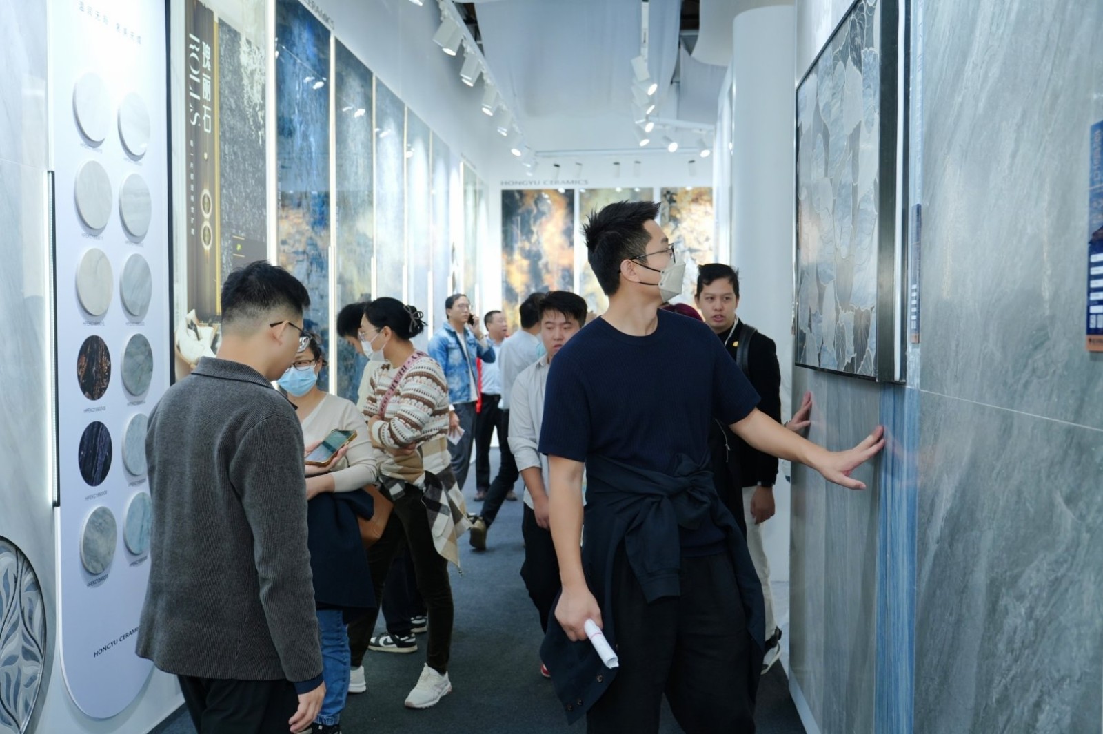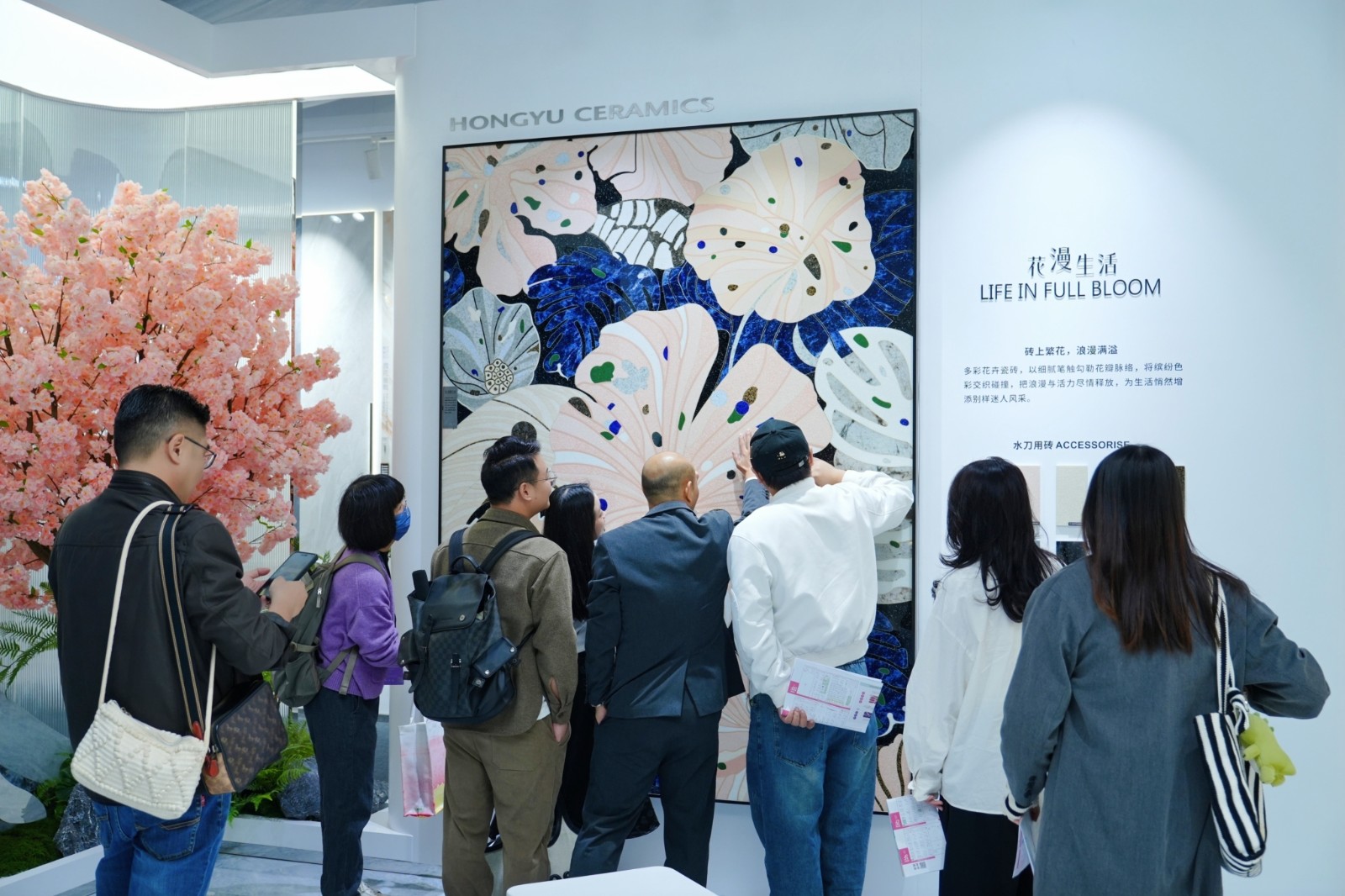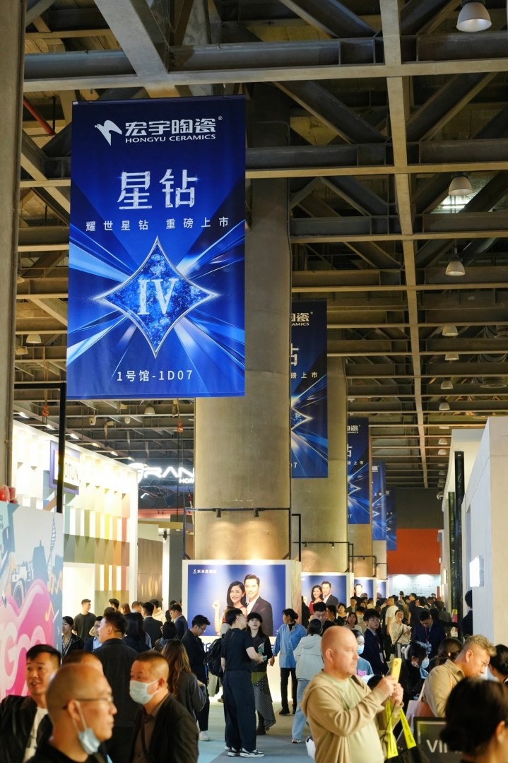 作为本次展会的核心亮点,星链计划携全新星钻系列、瑰丽石系列亮相,采用宏宇最新的星晶工艺,星晶立体呈现再升级,视觉效果更具层次感,加强釉面通透感,明暗细节一览无遗。多元风格覆盖不同家居场景,吸引众多设计师与经销商、年轻观众驻足品鉴、打卡互动,定格美学碰撞的瞬间。