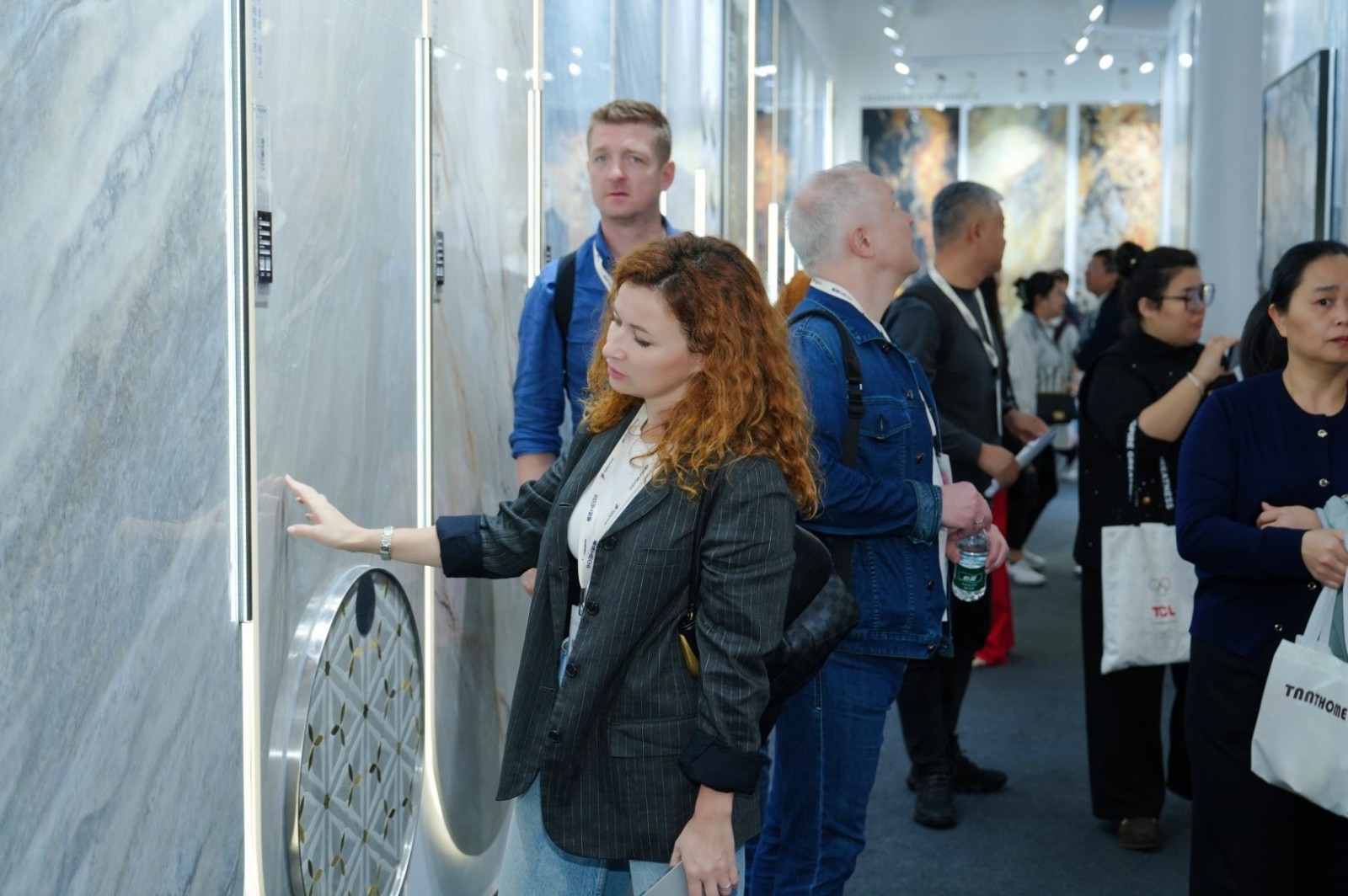 现场有观众真情分享:「宏宇星寰馆的科技氛围太震撼了!产品把艺术感和现代感融合得恰到好处,不管是星钻IV的星空质感,还是瑰丽石的自然肌理,都精准契合我们年轻人对高端轻奢家居的审美需求。」