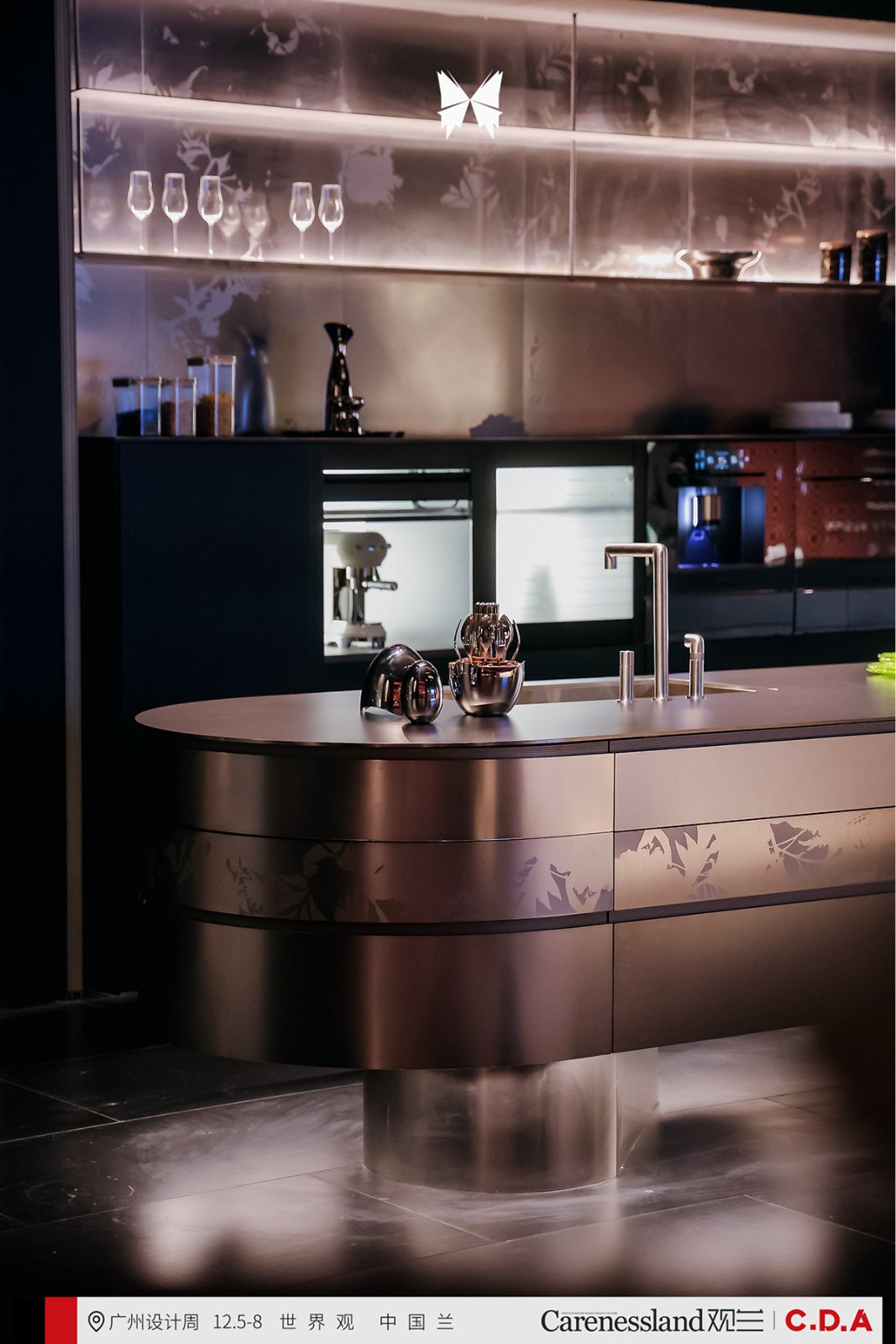 如果说「四季妆成」的创造是温柔的诗意,那么「月光岛台」的创造便是力量与优雅的极致碰撞。这款被誉为观兰年度最大亮点的西厨岛台,以2吨重、超200万价值的硬核实力,打破中国品牌的价格天花板,更以工艺与设计的双重突破,创造出奢侈品家居的全新标杆。