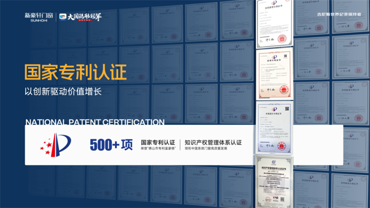 持续创新是新豪轩门窗保持领先的核心引擎。累计拥有500+项国家专利,直观印证了品牌深厚的技术积淀与强大的进化能力。从材料科学、结构设计到智能操控,新豪轩门窗以源源不断的技术创新成果,驱动着门窗产品的性能迭代与品类拓展,牢固占据行业技术制高点。以创新为根本驱动力,正是“年度致敬品牌”表彰新豪轩引领行业未来发展的关键依据。