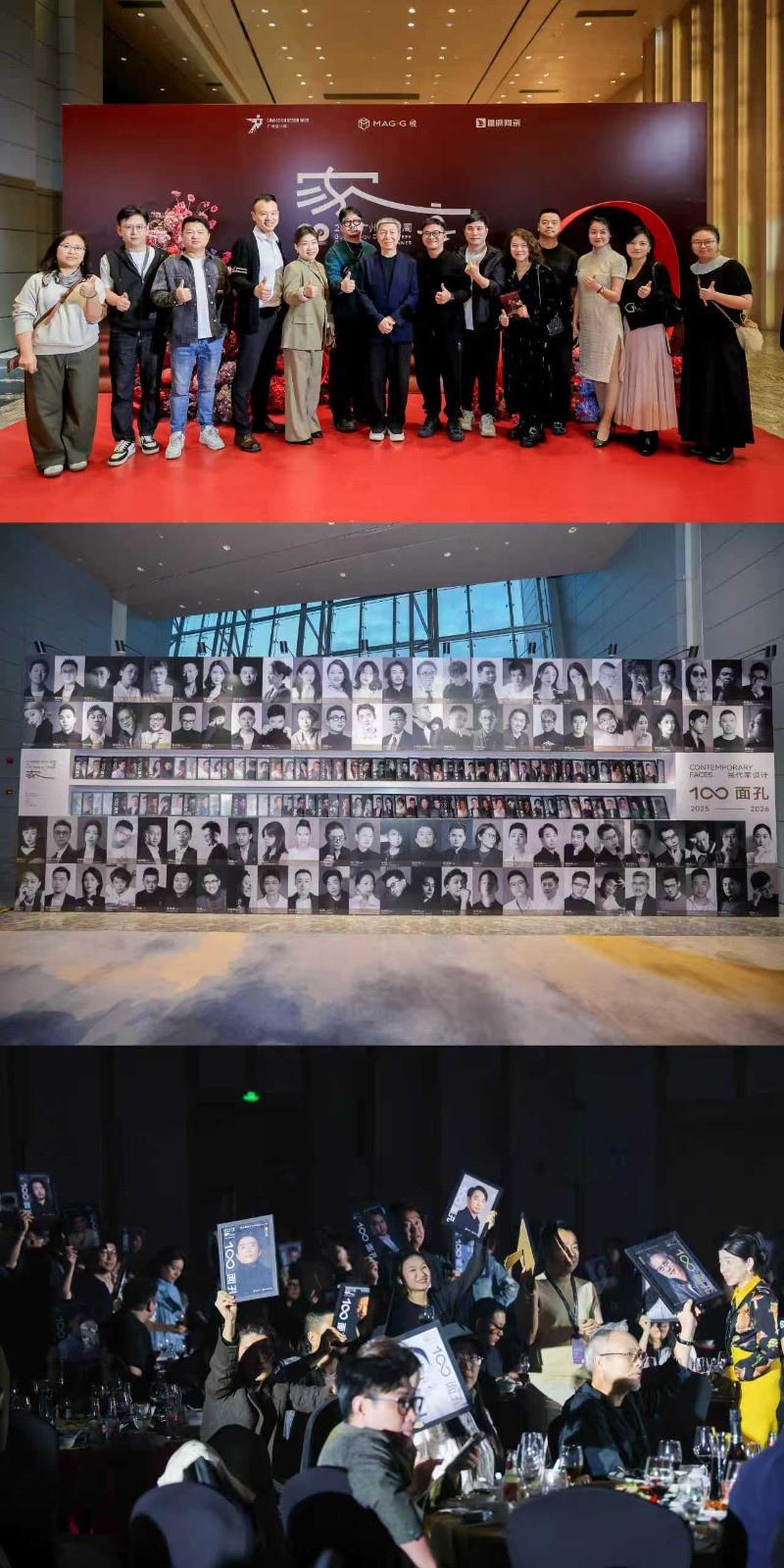 当「世界的中国家·当代家设计100面孔(2025–2026)」VCR播放时,现场氛围达到高潮——从一方宅院到广阔天地,一百张面孔、一百种探索,却都指向同一个方向:让国人看见文化的根脉,让世界看见东方的生动。这些设计师关于家,关于中国家的思考被记录,他们的精神正鼓舞着一个时代。在掌声与注视中,百位入选设计师从席位起身,高举面孔展示完成亮相——这一刻既是年度致敬,更是一幅属于当代中国家的真实群像,也象征着共同的信念与行业的未来方向。